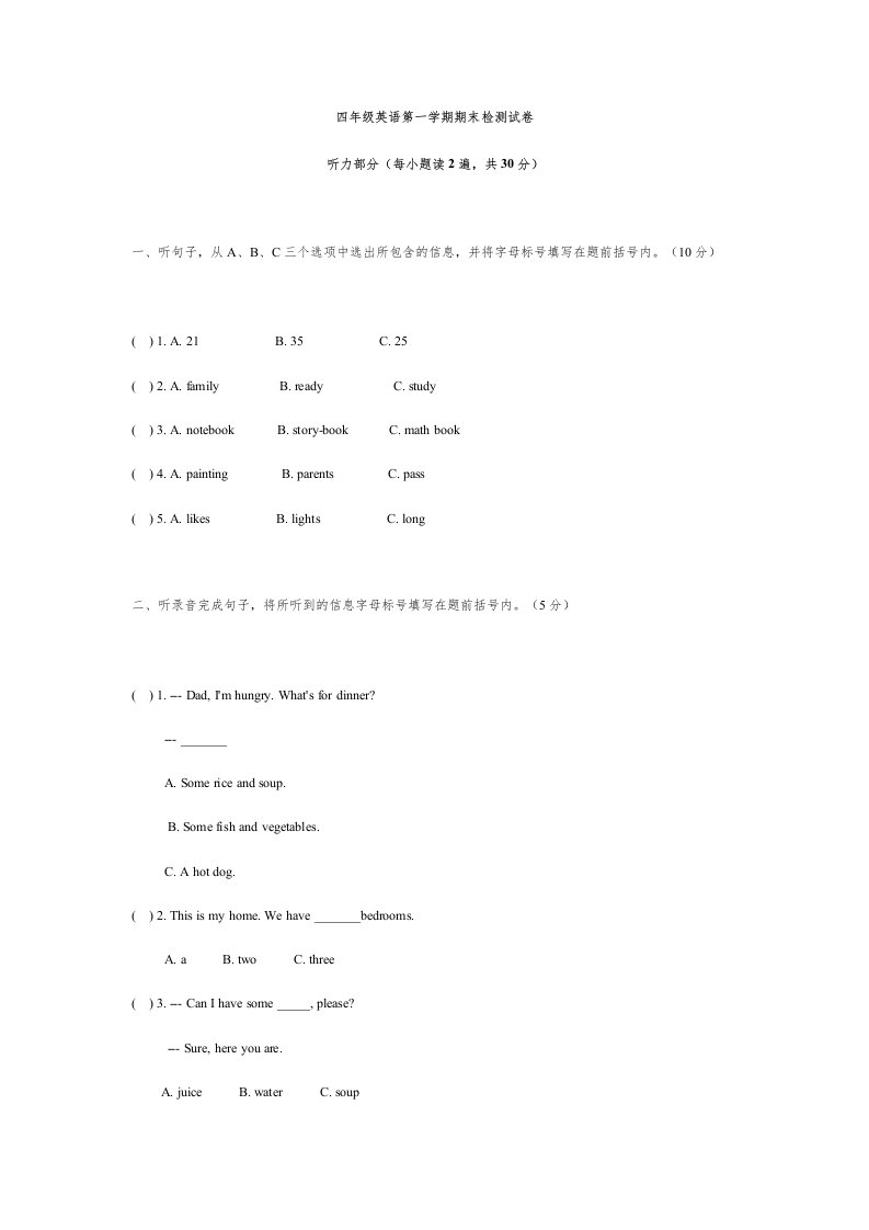 当前位置: 首页小学资源小学四年级正文 四年级英语上册期中测试卷2(含听力材料)(人教PEP)_共10页 小学四年级 7 天前 0 0 5 以上为部分内容预览,如需源文档请登录您的会员账号进行下载! 声明:本站所有文章,如无特殊说明或标注,均为本站原创发布。任何个人或组织,在未征得本站同意时,禁止复制、盗用、采集、发布本站内容到任何网站、书籍等各类媒体平台。如若本站内容侵犯了原著者的合法权益,可联系我们进行处理。 尚学资源永久会员 打赏 收藏 海报 链接