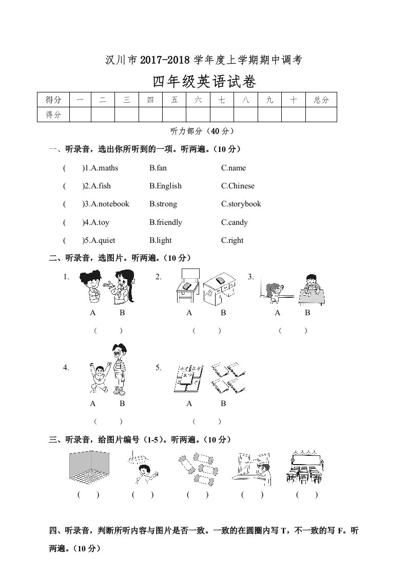 当前位置: 首页小学资源小学四年级正文 四年级英语上册汉川市期中调考试卷(人教PEP)_共5页 小学四年级 1 周前 0 0 5 以上为部分内容预览,如需源文档请登录您的会员账号进行下载! 声明:本站所有文章,如无特殊说明或标注,均为本站原创发布。任何个人或组织,在未征得本站同意时,禁止复制、盗用、采集、发布本站内容到任何网站、书籍等各类媒体平台。如若本站内容侵犯了原著者的合法权益,可联系我们进行处理。 尚学资源永久会员 打赏 收藏 海报 链接