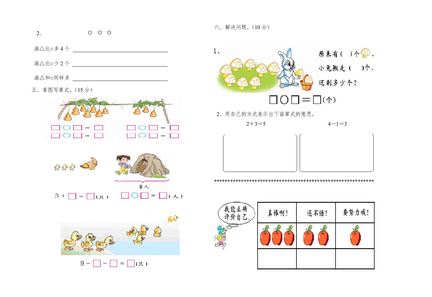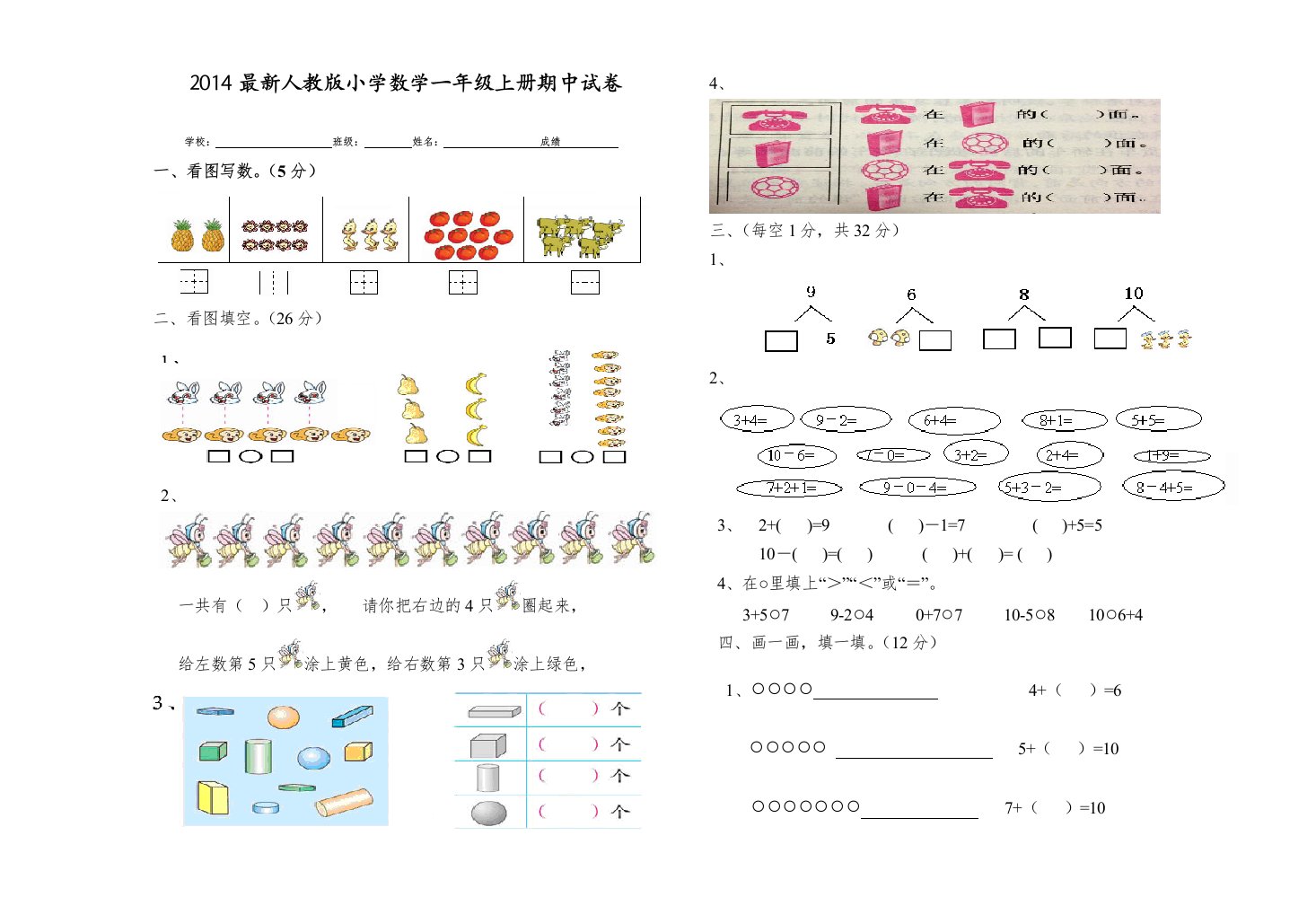 一年级数学上册期中试卷(二)(人教版)_共2页