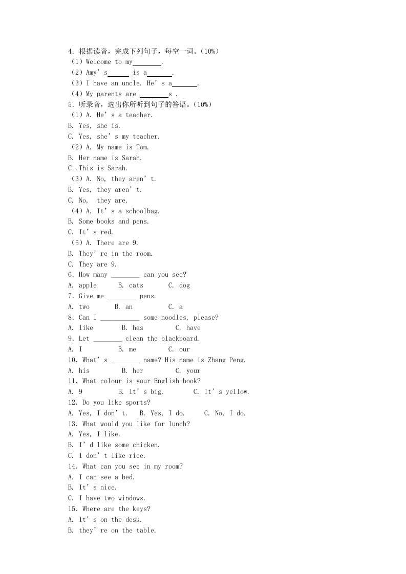 当前位置: 首页小学资源小学四年级正文 四年级英语上册期末测试卷2(人教PEP)_共5页 小学四年级 1 周前 0 0 5 以上为部分内容预览,如需源文档请登录您的会员账号进行下载! 声明:本站所有文章,如无特殊说明或标注,均为本站原创发布。任何个人或组织,在未征得本站同意时,禁止复制、盗用、采集、发布本站内容到任何网站、书籍等各类媒体平台。如若本站内容侵犯了原著者的合法权益,可联系我们进行处理。 尚学资源永久会员 打赏 收藏 海报 链接