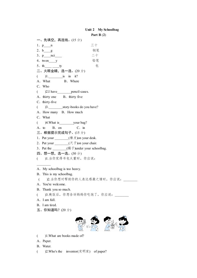 当前位置: 首页小学资源小学四年级正文 四年级英语上册课时测评Unit2Myschoolbag-PartB练习及答案(2)(人教PEP)_共3页 小学四年级 7 天前 0 0 5 以上为部分内容预览,如需源文档请登录您的会员账号进行下载! 声明:本站所有文章,如无特殊说明或标注,均为本站原创发布。任何个人或组织,在未征得本站同意时,禁止复制、盗用、采集、发布本站内容到任何网站、书籍等各类媒体平台。如若本站内容侵犯了原著者的合法权益,可联系我们进行处理。 尚学资源永久会员 打赏 收藏 海报 链接