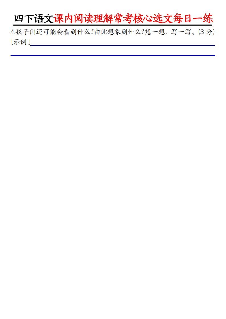 当前位置: 首页小学资源小学四年级正文 四下语文期末课内阅读理解常考核心选文每日一练_共26页 小学四年级 1 周前 0 0 15 以上为部分内容预览,如需源文档请登录您的会员账号进行下载! 声明:本站所有文章,如无特殊说明或标注,均为本站原创发布。任何个人或组织,在未征得本站同意时,禁止复制、盗用、采集、发布本站内容到任何网站、书籍等各类媒体平台。如若本站内容侵犯了原著者的合法权益,可联系我们进行处理。 尚学资源永久会员 打赏 收藏 海报 链接