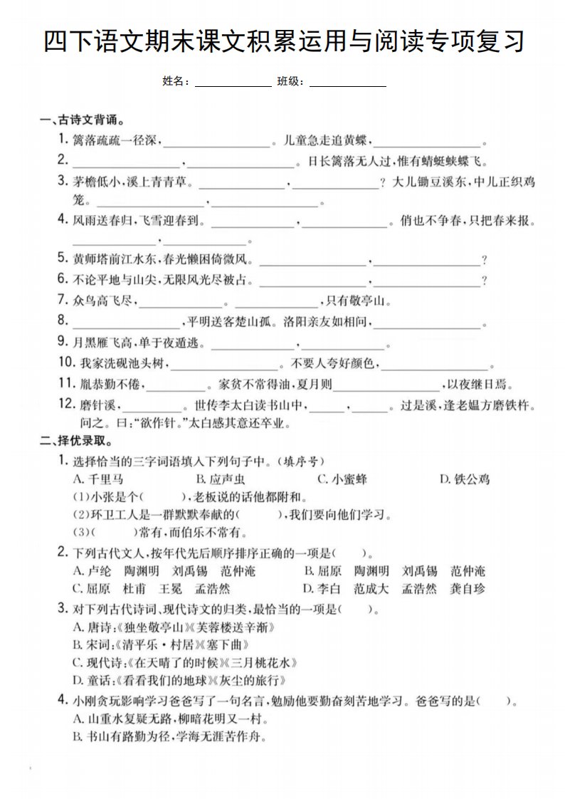 当前位置: 首页小学资源小学四年级正文 四下语文期末课文积累运用与阅读专项复习_共2页 小学四年级 1 周前 0 0 5 以上为部分内容预览,如需源文档请登录您的会员账号进行下载! 声明:本站所有文章,如无特殊说明或标注,均为本站原创发布。任何个人或组织,在未征得本站同意时,禁止复制、盗用、采集、发布本站内容到任何网站、书籍等各类媒体平台。如若本站内容侵犯了原著者的合法权益,可联系我们进行处理。 尚学资源永久会员 打赏 收藏 海报 链接