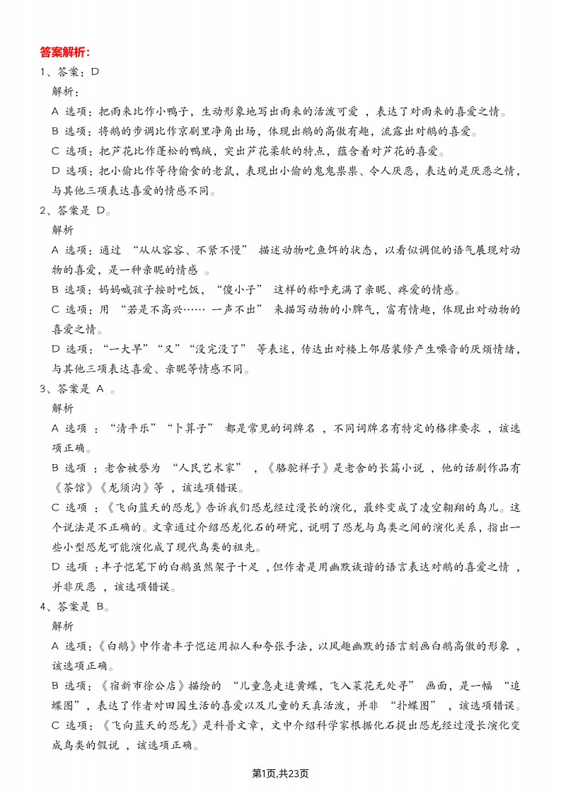 当前位置: 首页小学资源小学四年级正文 四下语文期末专项练习—综合选择题答案解析_共23页 小学四年级 7 天前 0 0 15 以上为部分内容预览,如需源文档请登录您的会员账号进行下载! 声明:本站所有文章,如无特殊说明或标注,均为本站原创发布。任何个人或组织,在未征得本站同意时,禁止复制、盗用、采集、发布本站内容到任何网站、书籍等各类媒体平台。如若本站内容侵犯了原著者的合法权益,可联系我们进行处理。 尚学资源永久会员 打赏 收藏 海报 链接