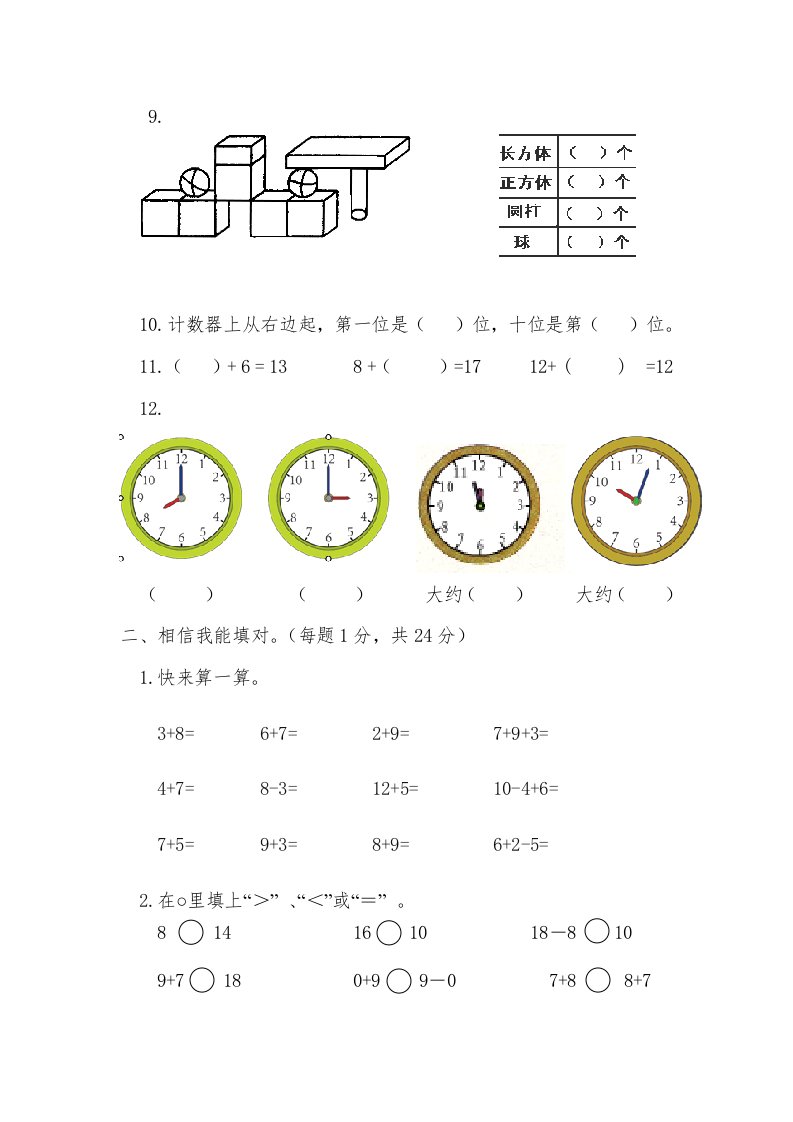当前位置: 首页小学资源小学一年级正文 一年级数学上册期末测试卷1(人教版)_共5页 小学一年级 2 周前 0 0 5 以上为部分内容预览,如需源文档请登录您的会员账号进行下载! 声明:本站所有文章,如无特殊说明或标注,均为本站原创发布。任何个人或组织,在未征得本站同意时,禁止复制、盗用、采集、发布本站内容到任何网站、书籍等各类媒体平台。如若本站内容侵犯了原著者的合法权益,可联系我们进行处理。 尚学资源永久会员 打赏 收藏 海报 链接
