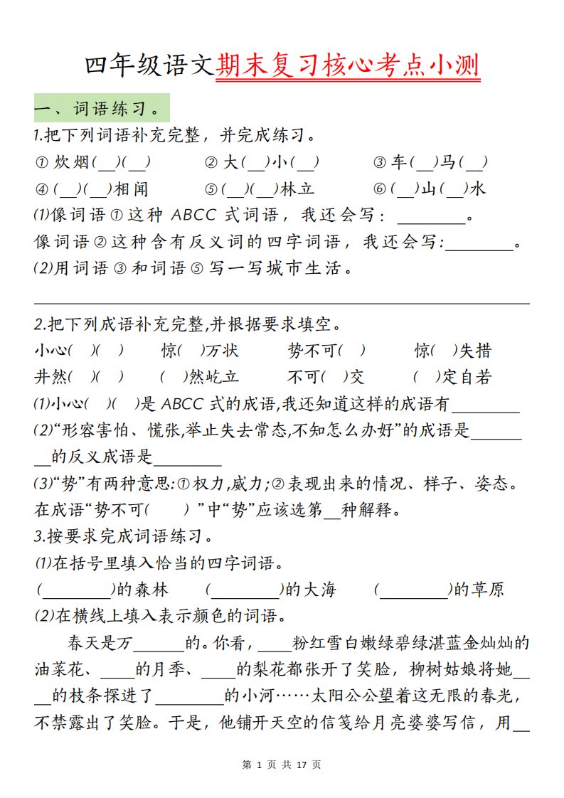 当前位置: 首页小学资源小学四年级正文 【期末复习核心考点小测】四下语文_共33页 小学四年级 1 周前 0 0 15 以上为部分内容预览,如需源文档请登录您的会员账号进行下载! 声明:本站所有文章,如无特殊说明或标注,均为本站原创发布。任何个人或组织,在未征得本站同意时,禁止复制、盗用、采集、发布本站内容到任何网站、书籍等各类媒体平台。如若本站内容侵犯了原著者的合法权益,可联系我们进行处理。 尚学资源永久会员 打赏 收藏 海报 链接