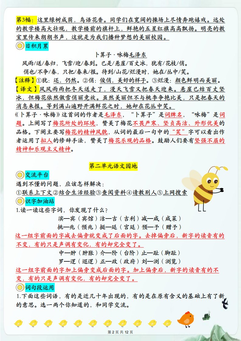 当前位置: 首页小学资源小学四年级正文 【语文园地必考考点归纳】四下语文_共12页 小学四年级 1 周前 0 0 10 以上为部分内容预览,如需源文档请登录您的会员账号进行下载! 声明:本站所有文章,如无特殊说明或标注,均为本站原创发布。任何个人或组织,在未征得本站同意时,禁止复制、盗用、采集、发布本站内容到任何网站、书籍等各类媒体平台。如若本站内容侵犯了原著者的合法权益,可联系我们进行处理。 尚学资源永久会员 打赏 收藏 海报 链接