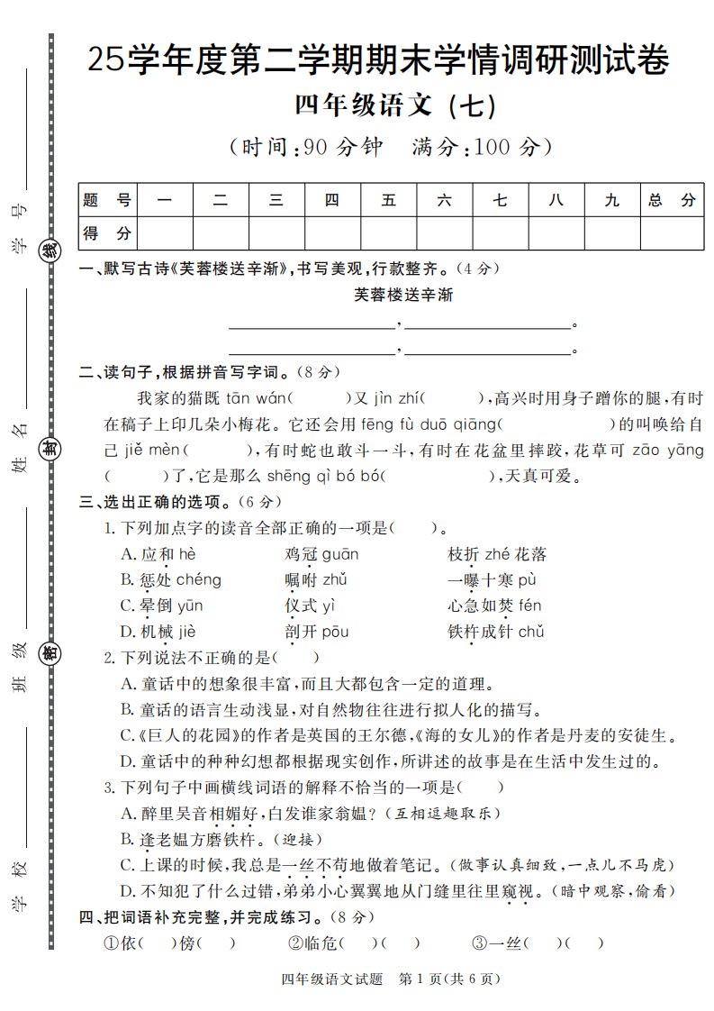 当前位置: 首页小学资源小学四年级正文 【四下语文】25学年度第二学期期末学情调研测试卷7_共7页 小学四年级 1 周前 0 0 5 以上为部分内容预览,如需源文档请登录您的会员账号进行下载! 声明:本站所有文章,如无特殊说明或标注,均为本站原创发布。任何个人或组织,在未征得本站同意时,禁止复制、盗用、采集、发布本站内容到任何网站、书籍等各类媒体平台。如若本站内容侵犯了原著者的合法权益,可联系我们进行处理。 尚学资源永久会员 打赏 收藏 海报 链接