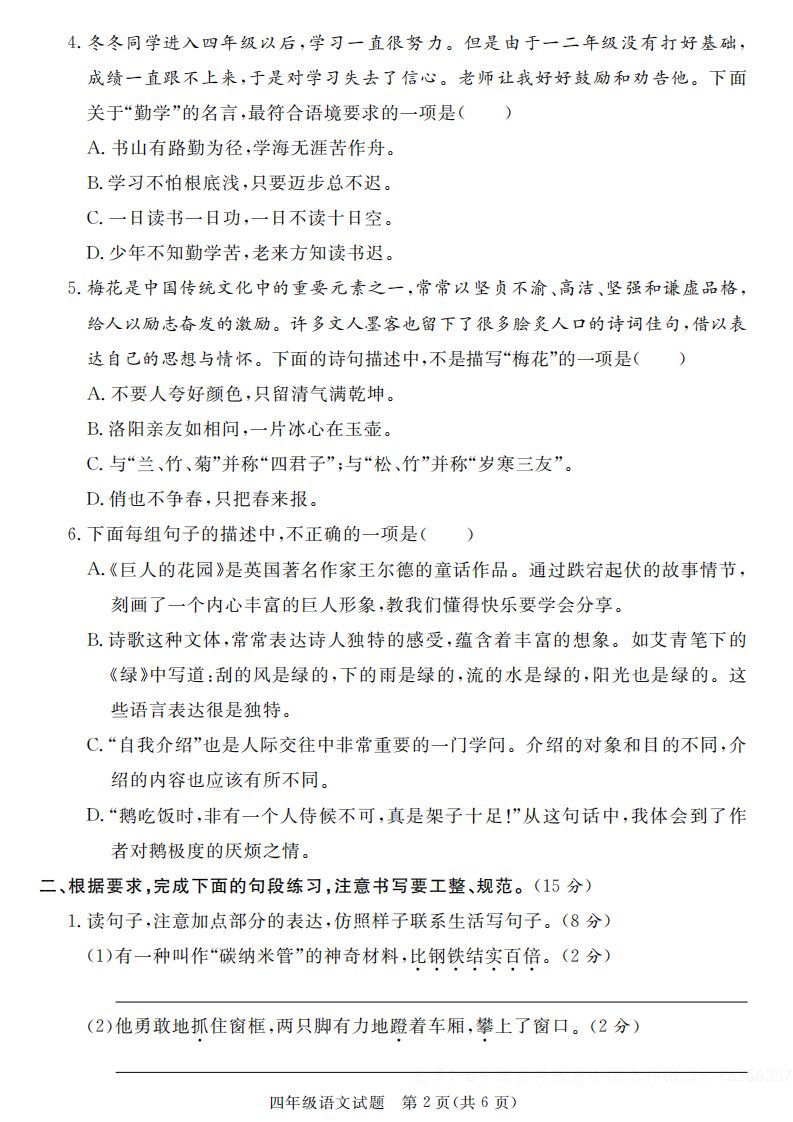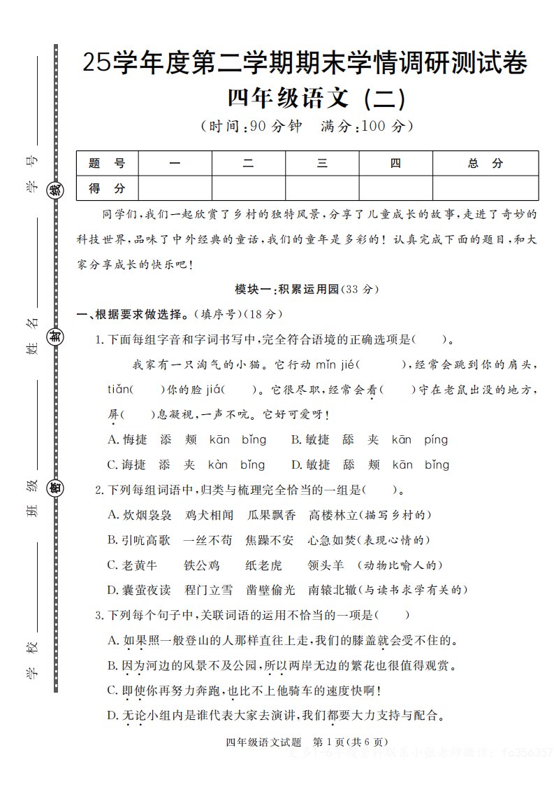 当前位置: 首页小学资源小学四年级正文 【四下语文】25学年度第二学期期末学情调研测试卷2_共7页 小学四年级 1 周前 0 0 5 以上为部分内容预览,如需源文档请登录您的会员账号进行下载! 声明:本站所有文章,如无特殊说明或标注,均为本站原创发布。任何个人或组织,在未征得本站同意时,禁止复制、盗用、采集、发布本站内容到任何网站、书籍等各类媒体平台。如若本站内容侵犯了原著者的合法权益,可联系我们进行处理。 尚学资源永久会员 打赏 收藏 海报 链接
