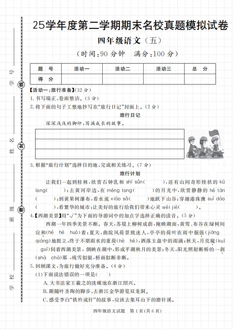 当前位置: 首页小学资源小学四年级正文 【期末真题模拟】四下语文25学年度第二学期期末测试卷5_共8页 小学四年级 7 天前 0 0 5 以上为部分内容预览,如需源文档请登录您的会员账号进行下载! 声明:本站所有文章,如无特殊说明或标注,均为本站原创发布。任何个人或组织,在未征得本站同意时,禁止复制、盗用、采集、发布本站内容到任何网站、书籍等各类媒体平台。如若本站内容侵犯了原著者的合法权益,可联系我们进行处理。 尚学资源永久会员 打赏 收藏 海报 链接