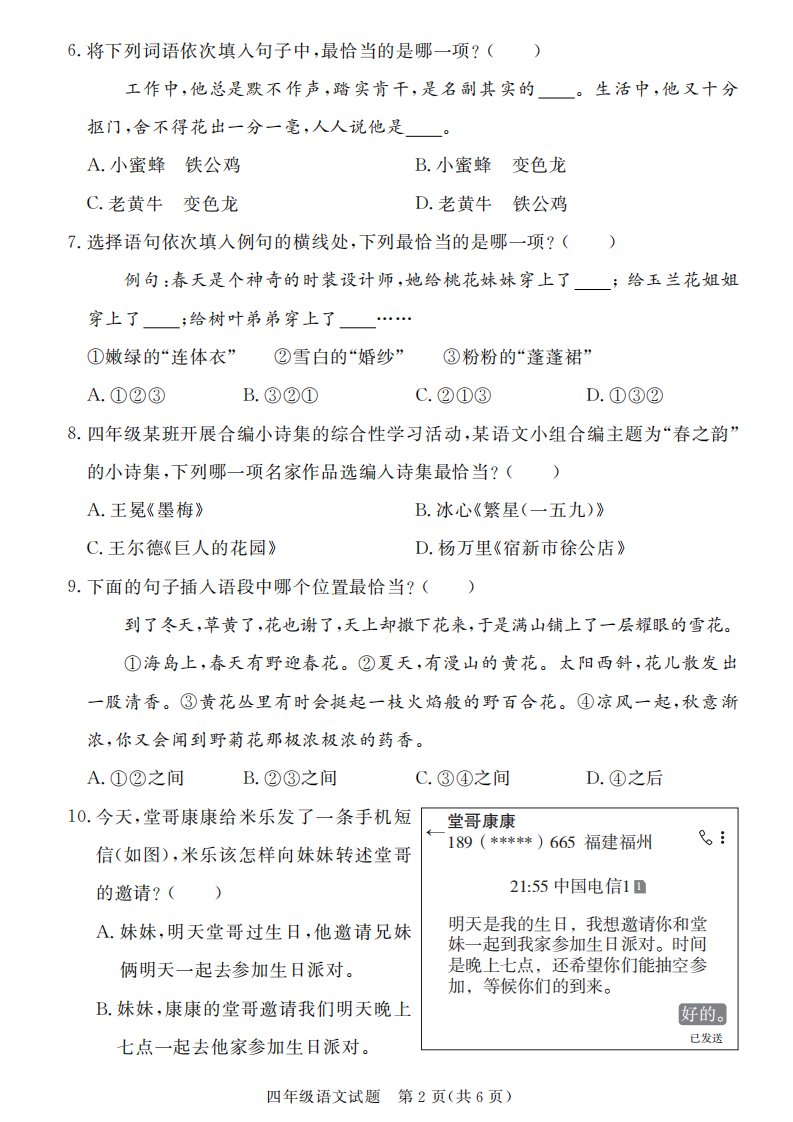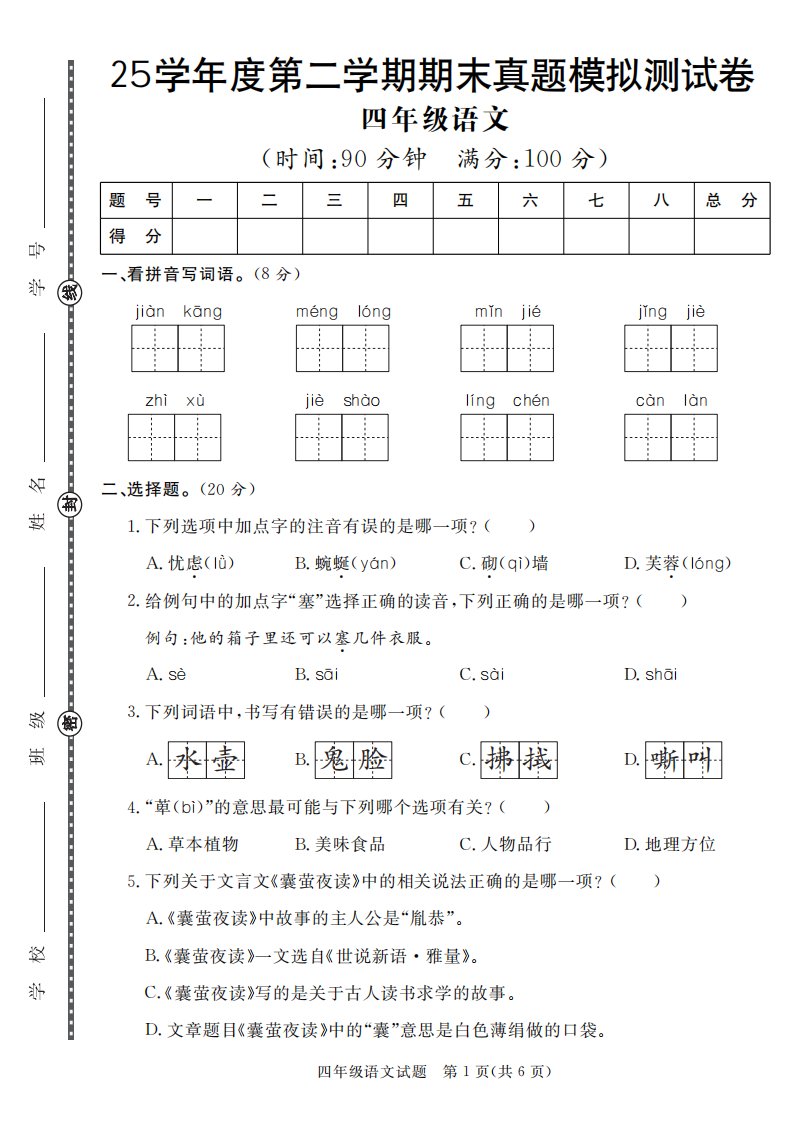 当前位置: 首页小学资源小学四年级正文 【期末真题模拟】四下语文25学年度第二学期期末测试卷3_共7页 小学四年级 1 周前 0 0 5 以上为部分内容预览,如需源文档请登录您的会员账号进行下载! 声明:本站所有文章,如无特殊说明或标注,均为本站原创发布。任何个人或组织,在未征得本站同意时,禁止复制、盗用、采集、发布本站内容到任何网站、书籍等各类媒体平台。如若本站内容侵犯了原著者的合法权益,可联系我们进行处理。 尚学资源永久会员 打赏 收藏 海报 链接