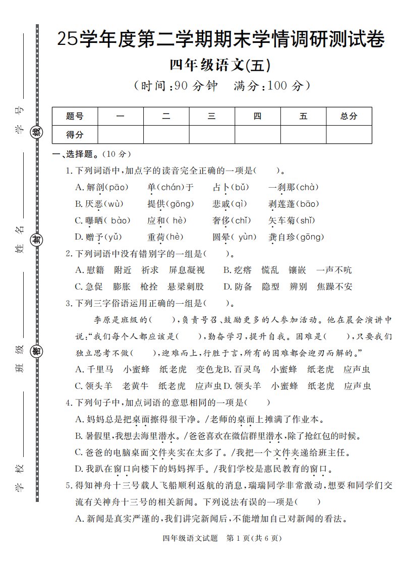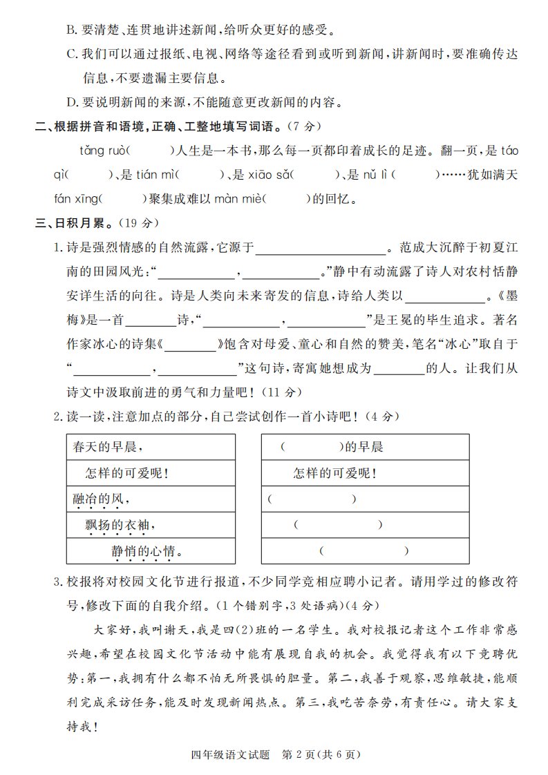 当前位置: 首页小学资源小学四年级正文 【四下语文】25学年度第二学期期末学情调研测试卷5_共7页 小学四年级 1 周前 0 0 5 以上为部分内容预览,如需源文档请登录您的会员账号进行下载! 声明:本站所有文章,如无特殊说明或标注,均为本站原创发布。任何个人或组织,在未征得本站同意时,禁止复制、盗用、采集、发布本站内容到任何网站、书籍等各类媒体平台。如若本站内容侵犯了原著者的合法权益,可联系我们进行处理。 尚学资源永久会员 打赏 收藏 海报 链接