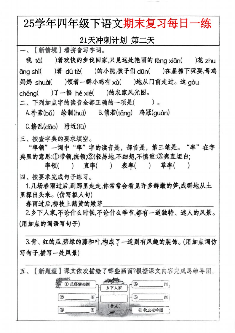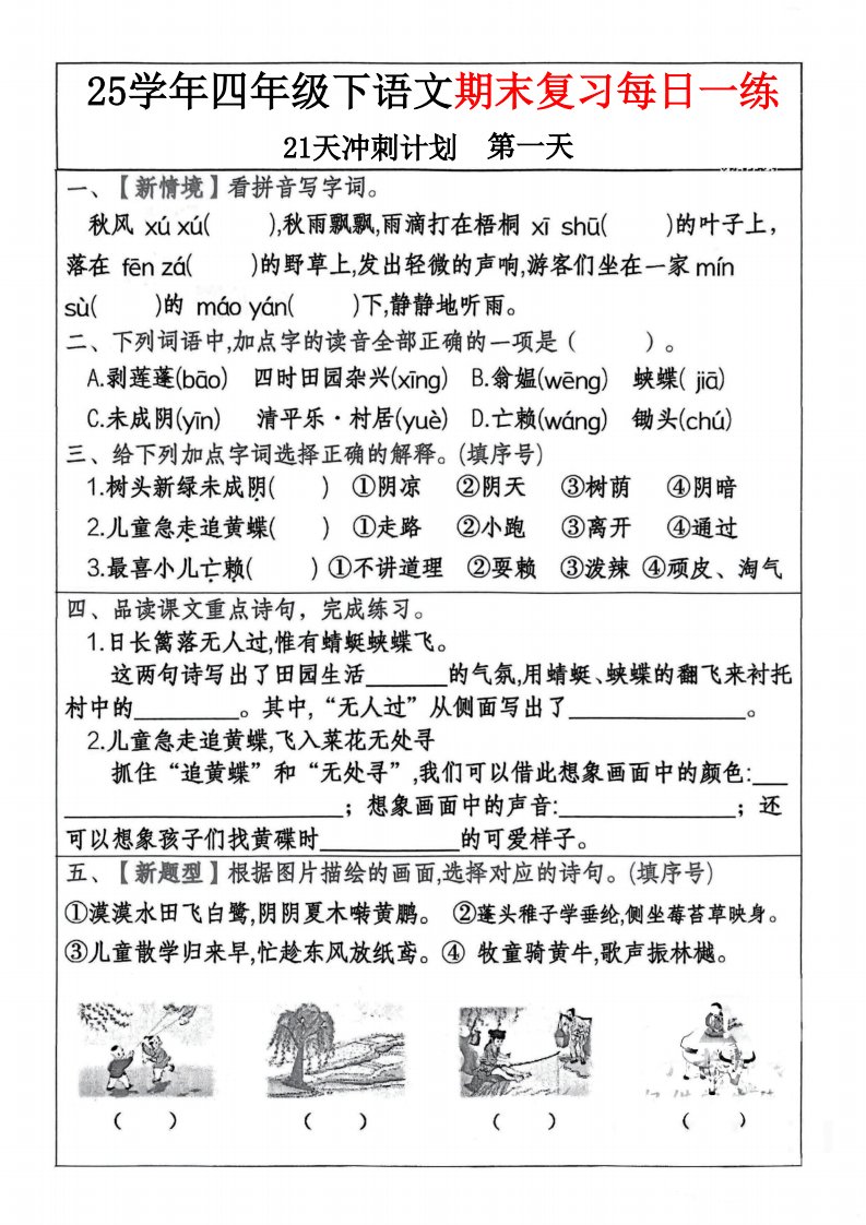 当前位置: 首页小学资源小学四年级正文 四下语文期末复习每日一练冲刺21天计划21页_共21页 小学四年级 1 周前 0 0 15 以上为部分内容预览,如需源文档请登录您的会员账号进行下载! 声明:本站所有文章,如无特殊说明或标注,均为本站原创发布。任何个人或组织,在未征得本站同意时,禁止复制、盗用、采集、发布本站内容到任何网站、书籍等各类媒体平台。如若本站内容侵犯了原著者的合法权益,可联系我们进行处理。 尚学资源永久会员 打赏 收藏 海报 链接