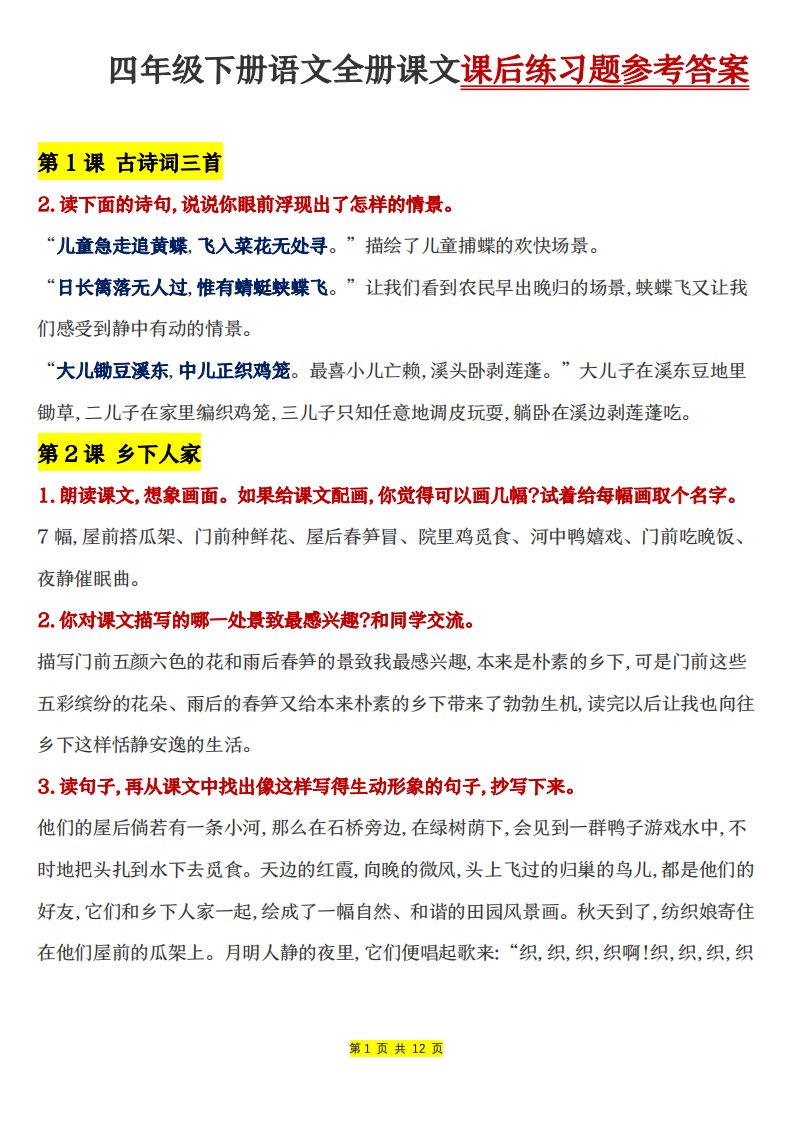 当前位置: 首页小学资源小学四年级正文 四下语文全册课文课后练习题参考答案_共12页 小学四年级 7 天前 0 0 10 以上为部分内容预览,如需源文档请登录您的会员账号进行下载! 声明:本站所有文章,如无特殊说明或标注,均为本站原创发布。任何个人或组织,在未征得本站同意时,禁止复制、盗用、采集、发布本站内容到任何网站、书籍等各类媒体平台。如若本站内容侵犯了原著者的合法权益,可联系我们进行处理。 尚学资源永久会员 打赏 收藏 海报 链接