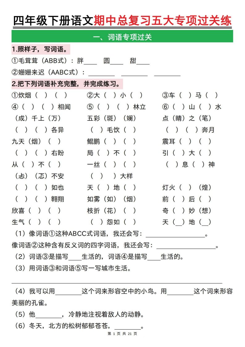 当前位置: 首页小学资源小学四年级正文 【期中总复习五大专项过关练(空白)】四下语文_共21页 小学四年级 1 周前 0 0 15 以上为部分内容预览,如需源文档请登录您的会员账号进行下载! 声明:本站所有文章,如无特殊说明或标注,均为本站原创发布。任何个人或组织,在未征得本站同意时,禁止复制、盗用、采集、发布本站内容到任何网站、书籍等各类媒体平台。如若本站内容侵犯了原著者的合法权益,可联系我们进行处理。 尚学资源永久会员 打赏 收藏 海报 链接