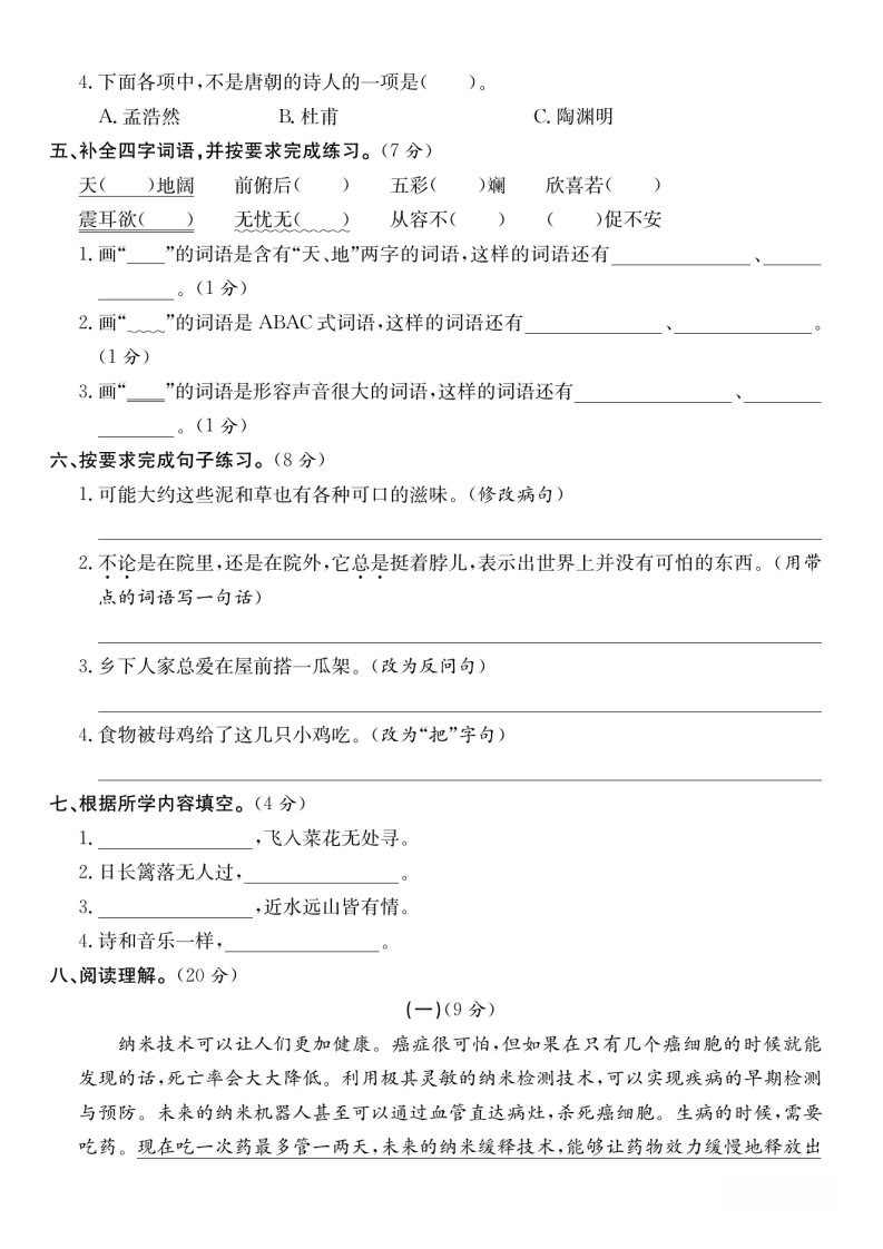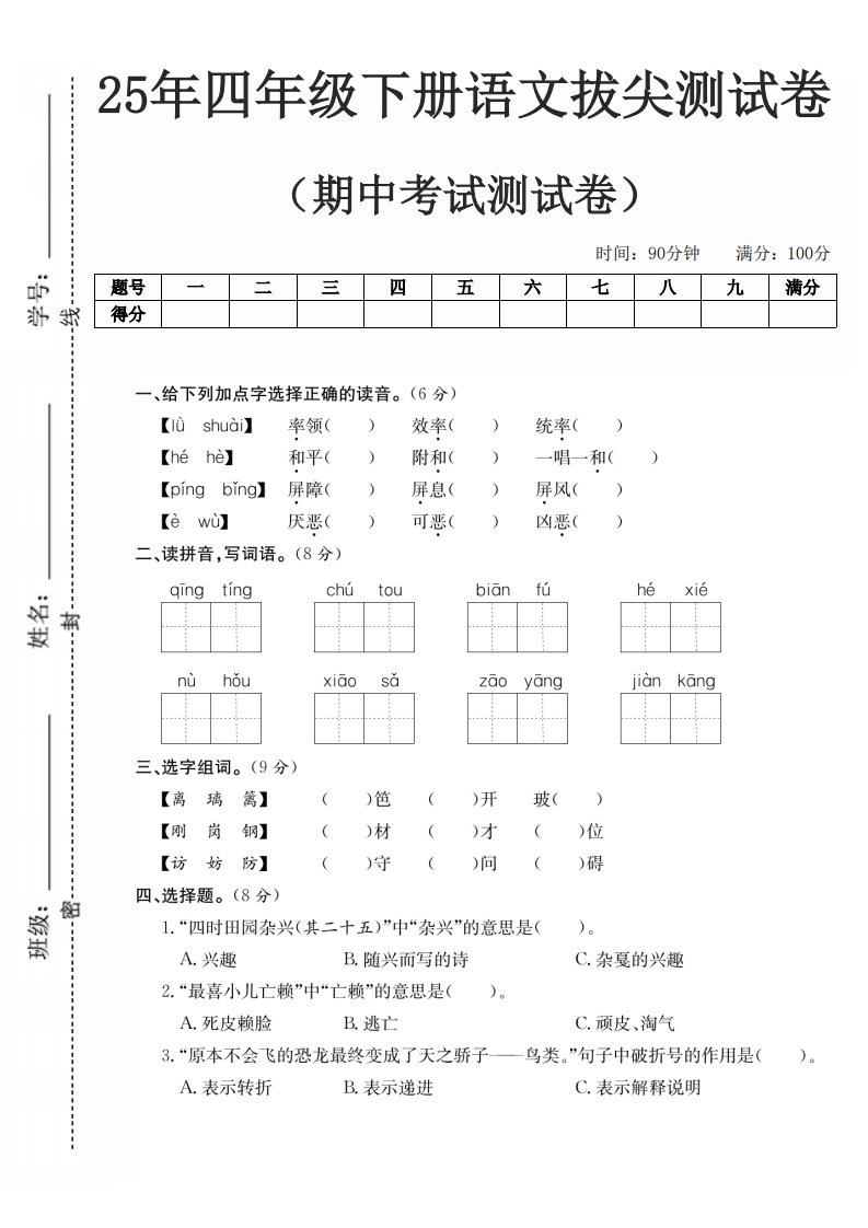 当前位置: 首页小学资源小学四年级正文 四下语文期中拔尖测试卷_共5页 小学四年级 1 周前 0 0 5 以上为部分内容预览,如需源文档请登录您的会员账号进行下载! 声明:本站所有文章,如无特殊说明或标注,均为本站原创发布。任何个人或组织,在未征得本站同意时,禁止复制、盗用、采集、发布本站内容到任何网站、书籍等各类媒体平台。如若本站内容侵犯了原著者的合法权益,可联系我们进行处理。 尚学资源永久会员 打赏 收藏 海报 链接