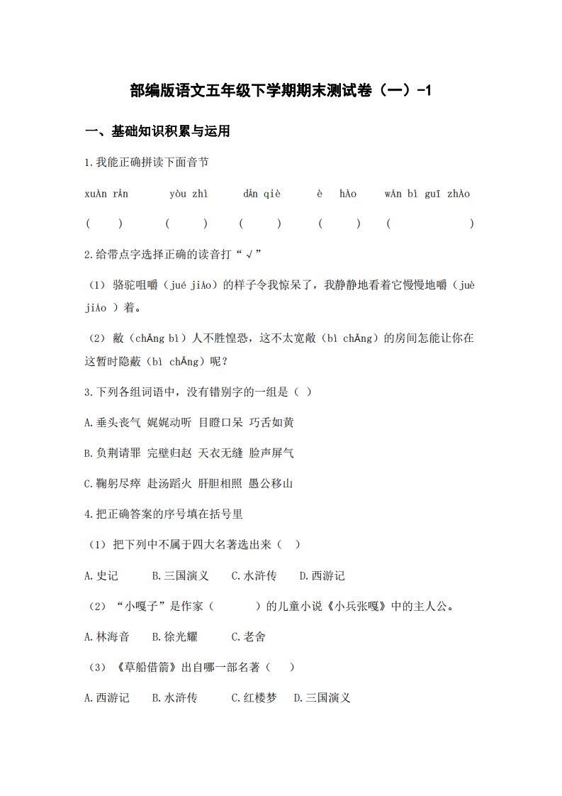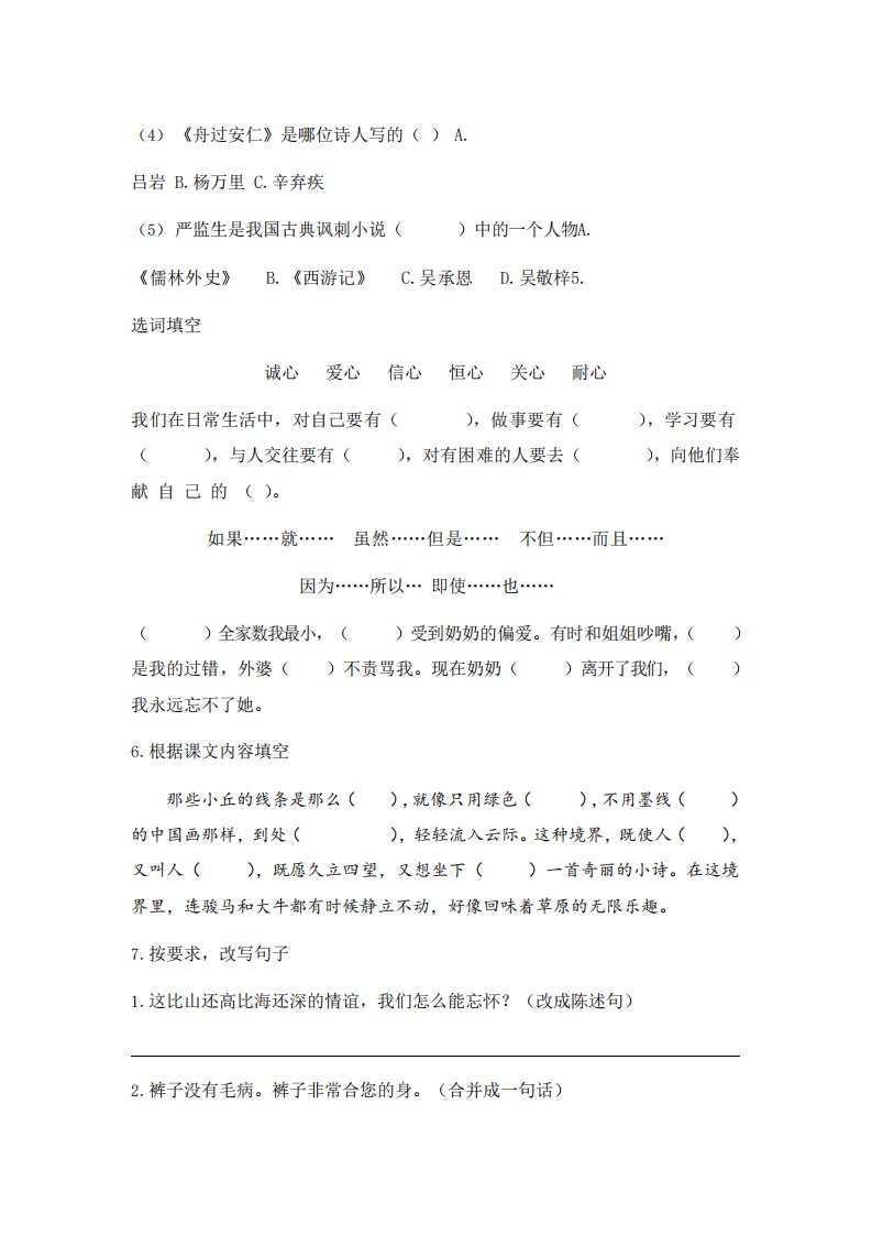 当前位置: 首页小学资源小学一年级正文 五年级下语文期末试卷一上卷部编版_共6页 小学一年级 2 周前 0 0 5 以上为部分内容预览,如需源文档请登录您的会员账号进行下载! 声明:本站所有文章,如无特殊说明或标注,均为本站原创发布。任何个人或组织,在未征得本站同意时,禁止复制、盗用、采集、发布本站内容到任何网站、书籍等各类媒体平台。如若本站内容侵犯了原著者的合法权益,可联系我们进行处理。 尚学资源永久会员 打赏 收藏 海报 链接
