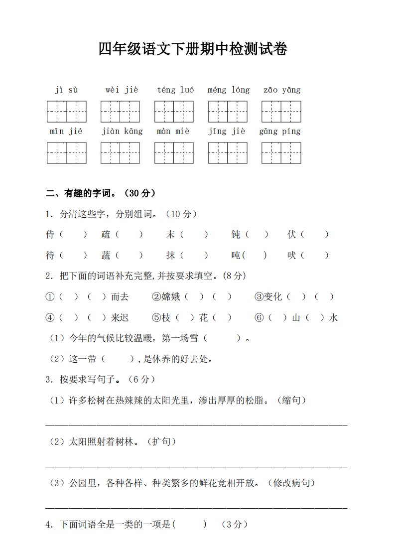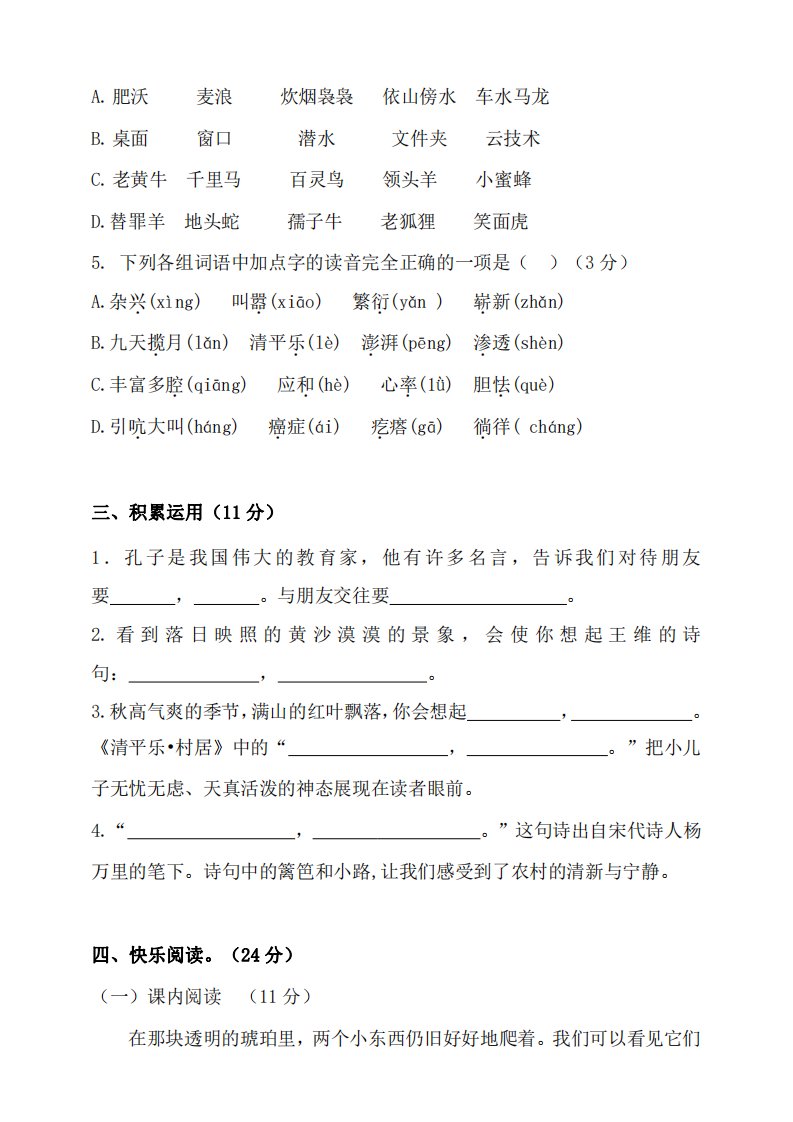 当前位置: 首页小学资源小学四年级正文 四年级下语文期中真题测试卷_共5页 小学四年级 1 周前 0 0 5 以上为部分内容预览,如需源文档请登录您的会员账号进行下载! 声明:本站所有文章,如无特殊说明或标注,均为本站原创发布。任何个人或组织,在未征得本站同意时,禁止复制、盗用、采集、发布本站内容到任何网站、书籍等各类媒体平台。如若本站内容侵犯了原著者的合法权益,可联系我们进行处理。 尚学资源永久会员 打赏 收藏 海报 链接