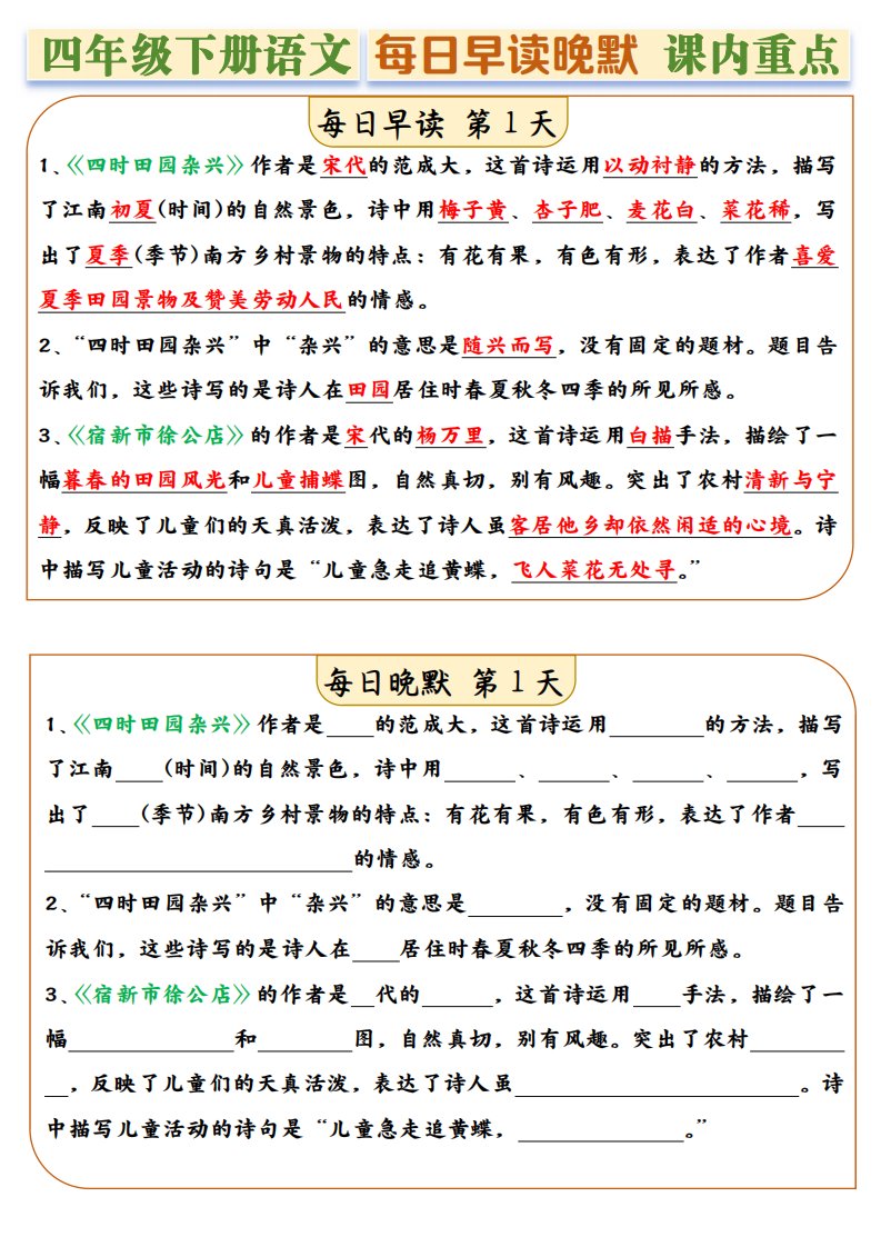 当前位置: 首页小学资源小学四年级正文 四年级下册语文全册课内重点早读晚默每日一练14天_共14页 小学四年级 7 天前 0 0 10 以上为部分内容预览,如需源文档请登录您的会员账号进行下载! 声明:本站所有文章,如无特殊说明或标注,均为本站原创发布。任何个人或组织,在未征得本站同意时,禁止复制、盗用、采集、发布本站内容到任何网站、书籍等各类媒体平台。如若本站内容侵犯了原著者的合法权益,可联系我们进行处理。 尚学资源永久会员 打赏 收藏 海报 链接