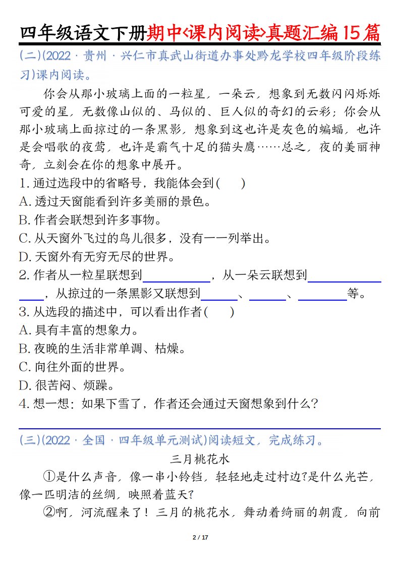 当前位置: 首页小学资源小学四年级正文 四下语文期中复习课内阅读理解真题15篇_共34页 小学四年级 7 天前 0 0 15 以上为部分内容预览,如需源文档请登录您的会员账号进行下载! 声明:本站所有文章,如无特殊说明或标注,均为本站原创发布。任何个人或组织,在未征得本站同意时,禁止复制、盗用、采集、发布本站内容到任何网站、书籍等各类媒体平台。如若本站内容侵犯了原著者的合法权益,可联系我们进行处理。 尚学资源永久会员 打赏 收藏 海报 链接