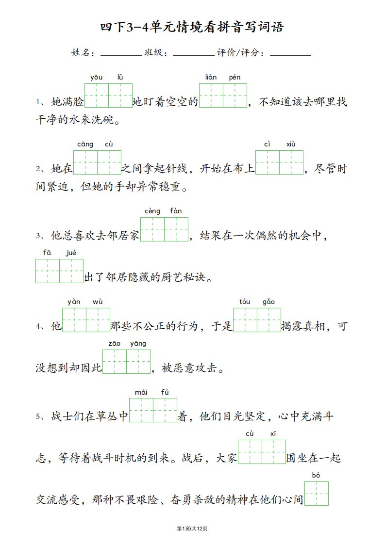 当前位置: 首页小学资源小学四年级正文 四下语文3-4单元情境看拼音写词语_共12页 小学四年级 1 周前 0 0 10 以上为部分内容预览,如需源文档请登录您的会员账号进行下载! 声明:本站所有文章,如无特殊说明或标注,均为本站原创发布。任何个人或组织,在未征得本站同意时,禁止复制、盗用、采集、发布本站内容到任何网站、书籍等各类媒体平台。如若本站内容侵犯了原著者的合法权益,可联系我们进行处理。 尚学资源永久会员 打赏 收藏 海报 链接