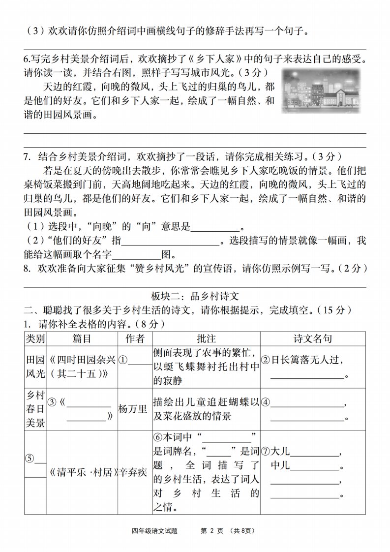 当前位置: 首页小学资源小学四年级正文 四年级下语文第一单元主题情景自测卷_共8页 小学四年级 7 天前 0 0 5 以上为部分内容预览,如需源文档请登录您的会员账号进行下载! 声明:本站所有文章,如无特殊说明或标注,均为本站原创发布。任何个人或组织,在未征得本站同意时,禁止复制、盗用、采集、发布本站内容到任何网站、书籍等各类媒体平台。如若本站内容侵犯了原著者的合法权益,可联系我们进行处理。 尚学资源永久会员 打赏 收藏 海报 链接
