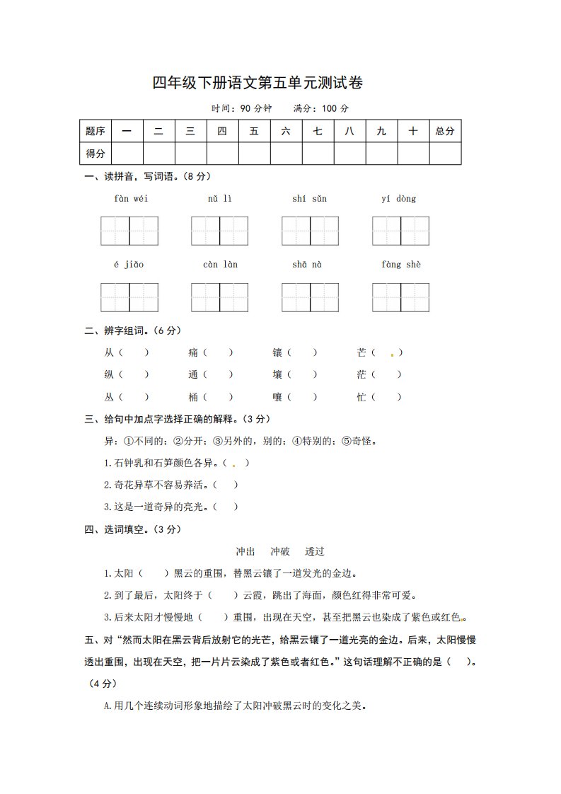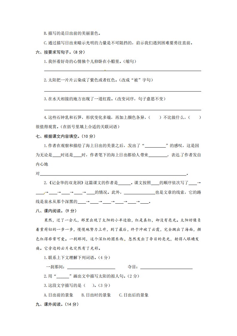 当前位置: 首页小学资源小学四年级正文 四下语文第五单元测试卷-2_共5页 小学四年级 7 天前 0 0 5 以上为部分内容预览,如需源文档请登录您的会员账号进行下载! 声明:本站所有文章,如无特殊说明或标注,均为本站原创发布。任何个人或组织,在未征得本站同意时,禁止复制、盗用、采集、发布本站内容到任何网站、书籍等各类媒体平台。如若本站内容侵犯了原著者的合法权益,可联系我们进行处理。 尚学资源永久会员 打赏 收藏 海报 链接