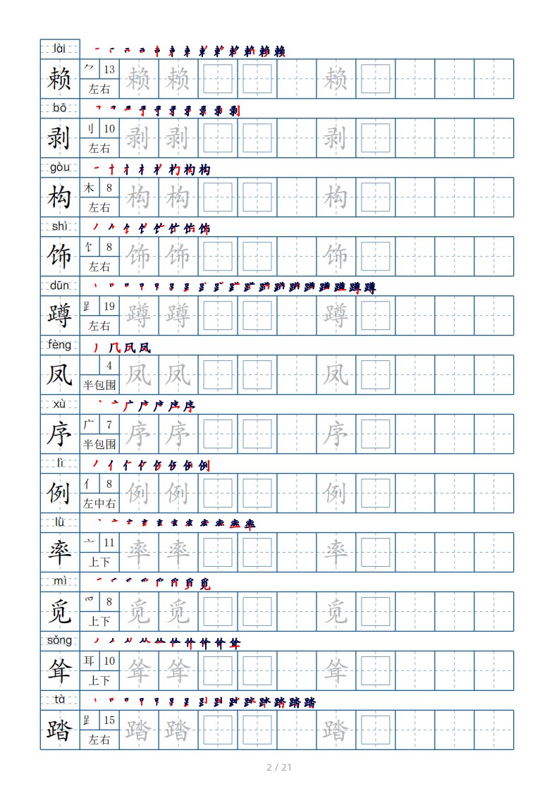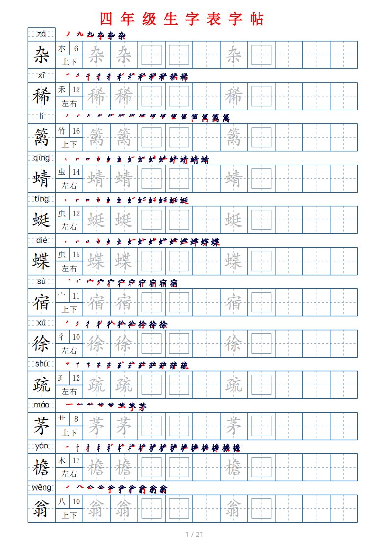 当前位置: 首页小学资源小学四年级正文 【生字表字帖250个(偏旁部首+笔顺+拼音21页)】四下语文_共21页 小学四年级 1 周前 0 0 15 以上为部分内容预览,如需源文档请登录您的会员账号进行下载! 声明:本站所有文章,如无特殊说明或标注,均为本站原创发布。任何个人或组织,在未征得本站同意时,禁止复制、盗用、采集、发布本站内容到任何网站、书籍等各类媒体平台。如若本站内容侵犯了原著者的合法权益,可联系我们进行处理。 尚学资源永久会员 打赏 收藏 海报 链接