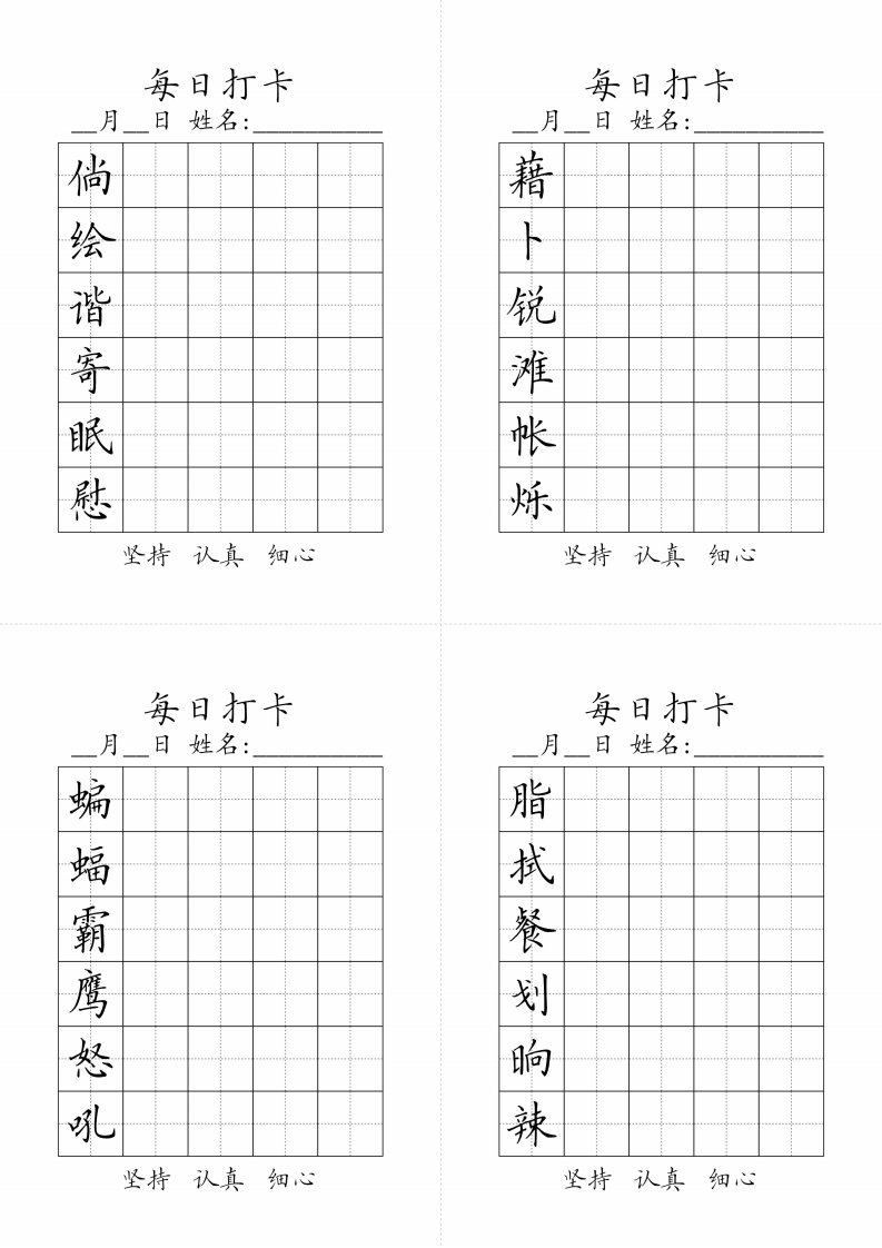 当前位置: 首页小学资源小学四年级正文 【字帖-生字字帖(每日打卡)】四下语文_共11页 小学四年级 1 周前 0 0 10 以上为部分内容预览,如需源文档请登录您的会员账号进行下载! 声明:本站所有文章,如无特殊说明或标注,均为本站原创发布。任何个人或组织,在未征得本站同意时,禁止复制、盗用、采集、发布本站内容到任何网站、书籍等各类媒体平台。如若本站内容侵犯了原著者的合法权益,可联系我们进行处理。 尚学资源永久会员 打赏 收藏 海报 链接