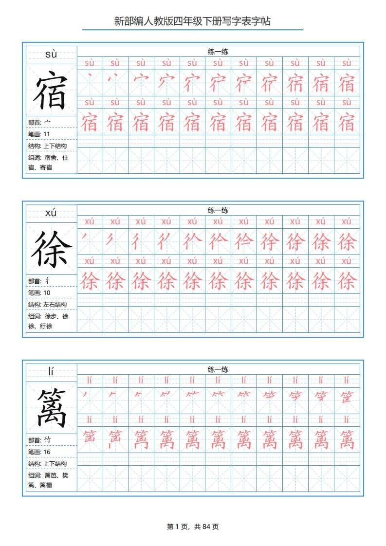 当前位置: 首页小学资源小学四年级正文 【写字表字帖】四下语文_共84页 小学四年级 7 天前 0 0 15 以上为部分内容预览,如需源文档请登录您的会员账号进行下载! 声明:本站所有文章,如无特殊说明或标注,均为本站原创发布。任何个人或组织,在未征得本站同意时,禁止复制、盗用、采集、发布本站内容到任何网站、书籍等各类媒体平台。如若本站内容侵犯了原著者的合法权益,可联系我们进行处理。 尚学资源永久会员 打赏 收藏 海报 链接