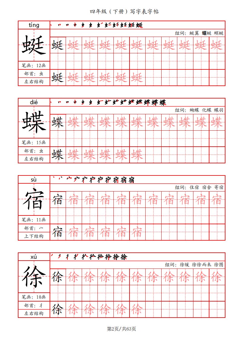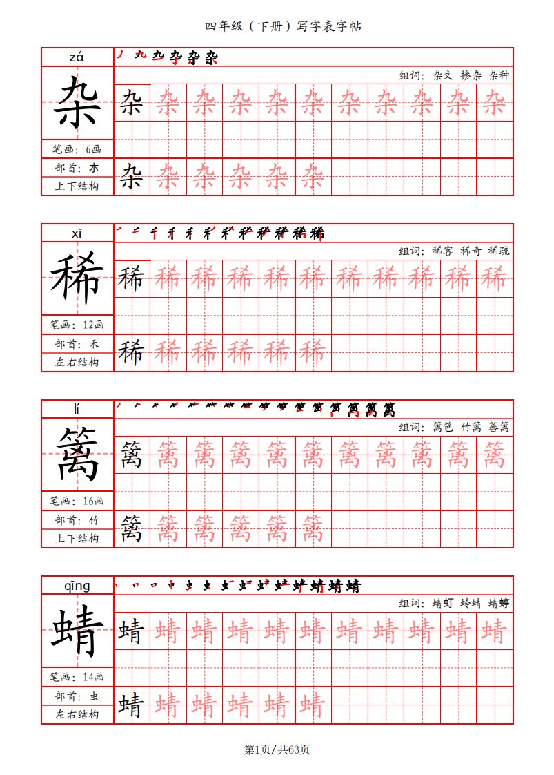 当前位置: 首页小学资源小学四年级正文 【写字表字帖(笔画+部首+笔顺+组词)】四下语文_共63页 小学四年级 7 天前 0 0 15 以上为部分内容预览,如需源文档请登录您的会员账号进行下载! 声明:本站所有文章,如无特殊说明或标注,均为本站原创发布。任何个人或组织,在未征得本站同意时,禁止复制、盗用、采集、发布本站内容到任何网站、书籍等各类媒体平台。如若本站内容侵犯了原著者的合法权益,可联系我们进行处理。 尚学资源永久会员 打赏 收藏 海报 链接