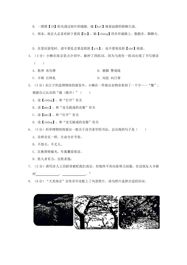 2023-2024学年江苏省南京市栖霞区四年级下学期期末语文真题及答案(Word版)_共11页