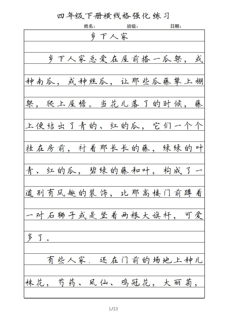 当前位置: 首页小学资源小学四年级正文 四年级语文下册横线格(部编版)_共23页 小学四年级 7 天前 0 0 15 以上为部分内容预览,如需源文档请登录您的会员账号进行下载! 声明:本站所有文章,如无特殊说明或标注,均为本站原创发布。任何个人或组织,在未征得本站同意时,禁止复制、盗用、采集、发布本站内容到任何网站、书籍等各类媒体平台。如若本站内容侵犯了原著者的合法权益,可联系我们进行处理。 尚学资源永久会员 打赏 收藏 海报 链接