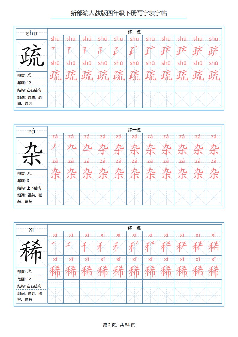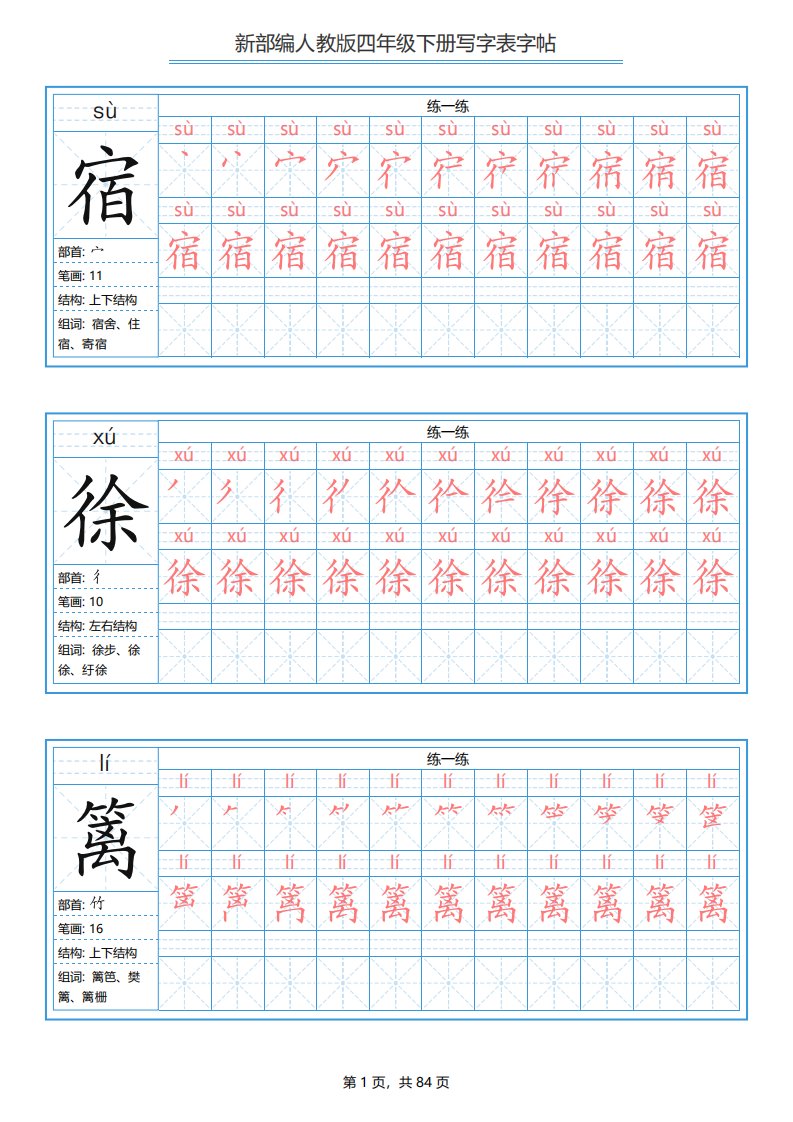 当前位置: 首页小学资源小学四年级正文 四年级语文下册写字表字帖(84页)PDF(部编版)_共84页 小学四年级 7 天前 0 0 15 以上为部分内容预览,如需源文档请登录您的会员账号进行下载! 声明:本站所有文章,如无特殊说明或标注,均为本站原创发布。任何个人或组织,在未征得本站同意时,禁止复制、盗用、采集、发布本站内容到任何网站、书籍等各类媒体平台。如若本站内容侵犯了原著者的合法权益,可联系我们进行处理。 尚学资源永久会员 打赏 收藏 海报 链接