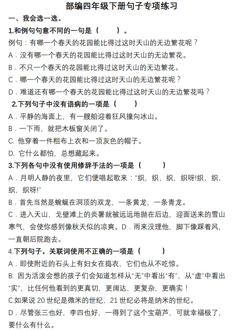 当前位置: 首页小学资源小学四年级正文 4年级句子专项练习_共15页 小学四年级 7 天前 0 0 10 以上为部分内容预览,如需源文档请登录您的会员账号进行下载! 声明:本站所有文章,如无特殊说明或标注,均为本站原创发布。任何个人或组织,在未征得本站同意时,禁止复制、盗用、采集、发布本站内容到任何网站、书籍等各类媒体平台。如若本站内容侵犯了原著者的合法权益,可联系我们进行处理。 尚学资源永久会员 打赏 收藏 海报 链接