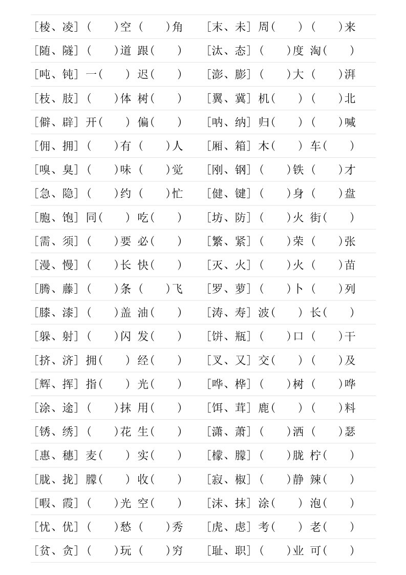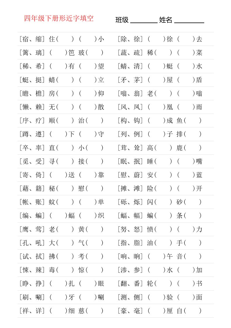 当前位置: 首页小学资源小学四年级正文 ❤四年级下册形近字专项练习_共18页 小学四年级 7 天前 0 0 10 以上为部分内容预览,如需源文档请登录您的会员账号进行下载! 声明:本站所有文章,如无特殊说明或标注,均为本站原创发布。任何个人或组织,在未征得本站同意时,禁止复制、盗用、采集、发布本站内容到任何网站、书籍等各类媒体平台。如若本站内容侵犯了原著者的合法权益,可联系我们进行处理。 尚学资源永久会员 打赏 收藏 海报 链接