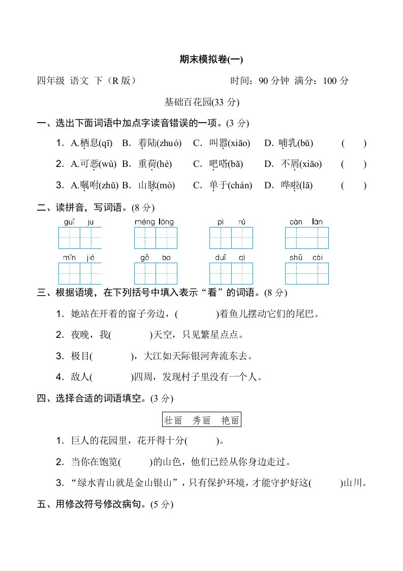 当前位置: 首页小学资源小学四年级正文 四年级语文下册期末模拟卷(一)_共9页 小学四年级 1 周前 0 0 5 以上为部分内容预览,如需源文档请登录您的会员账号进行下载! 声明:本站所有文章,如无特殊说明或标注,均为本站原创发布。任何个人或组织,在未征得本站同意时,禁止复制、盗用、采集、发布本站内容到任何网站、书籍等各类媒体平台。如若本站内容侵犯了原著者的合法权益,可联系我们进行处理。 尚学资源永久会员 打赏 收藏 海报 链接