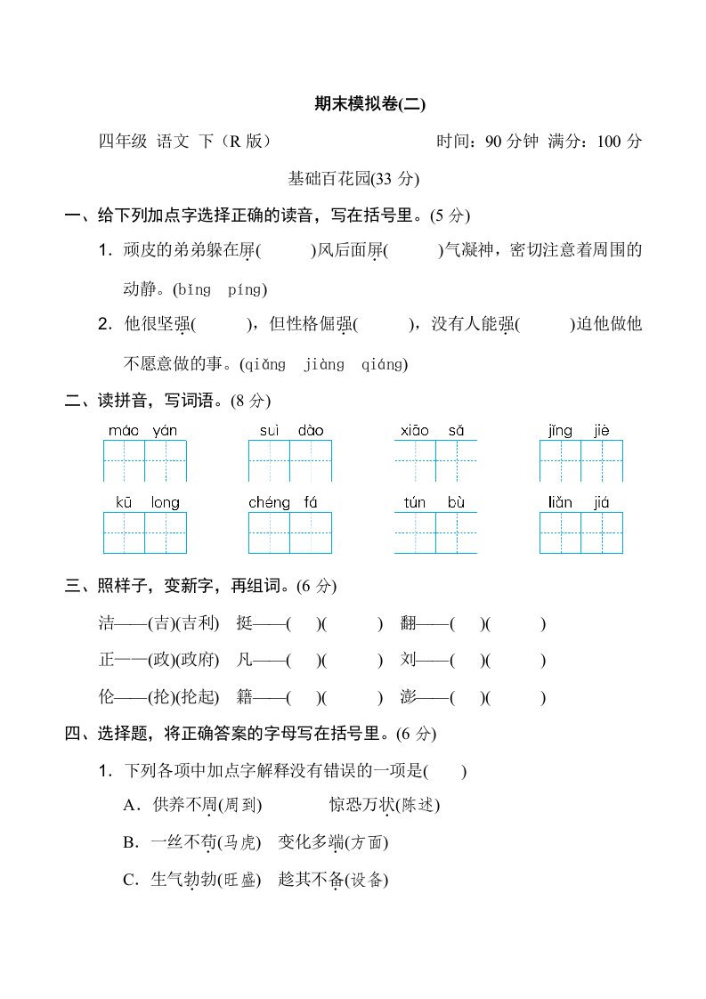 当前位置: 首页小学资源小学四年级正文 四年级语文下册期末模拟卷(二)_共8页 小学四年级 1 周前 0 0 5 以上为部分内容预览,如需源文档请登录您的会员账号进行下载! 声明:本站所有文章,如无特殊说明或标注,均为本站原创发布。任何个人或组织,在未征得本站同意时,禁止复制、盗用、采集、发布本站内容到任何网站、书籍等各类媒体平台。如若本站内容侵犯了原著者的合法权益,可联系我们进行处理。 尚学资源永久会员 打赏 收藏 海报 链接