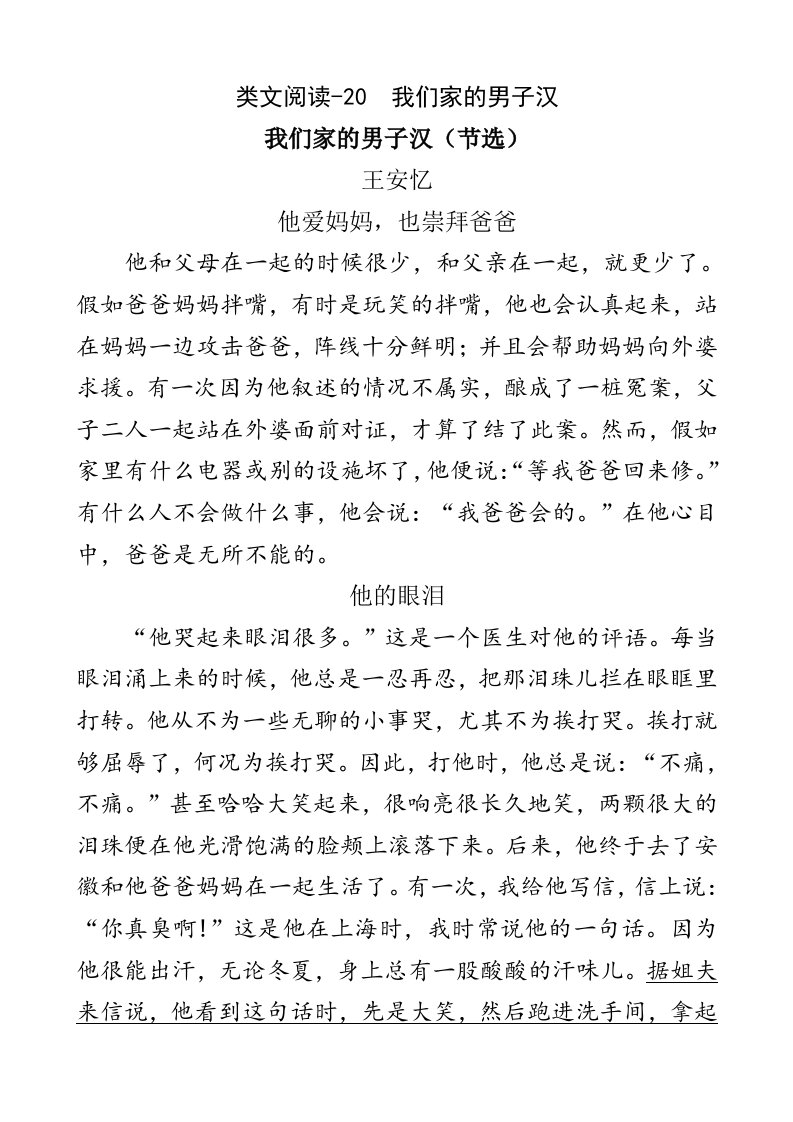 当前位置: 首页小学资源小学四年级正文 四年级语文下册类文阅读-20我们家的男子汉_共5页 小学四年级 1 周前 0 0 5 以上为部分内容预览,如需源文档请登录您的会员账号进行下载! 声明:本站所有文章,如无特殊说明或标注,均为本站原创发布。任何个人或组织,在未征得本站同意时,禁止复制、盗用、采集、发布本站内容到任何网站、书籍等各类媒体平台。如若本站内容侵犯了原著者的合法权益,可联系我们进行处理。 尚学资源永久会员 打赏 收藏 海报 链接