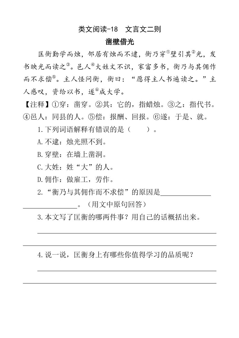 当前位置: 首页小学资源小学四年级正文 四年级语文下册类文阅读-18文言文二则_共3页 小学四年级 7 天前 0 0 5 以上为部分内容预览,如需源文档请登录您的会员账号进行下载! 声明:本站所有文章,如无特殊说明或标注,均为本站原创发布。任何个人或组织,在未征得本站同意时,禁止复制、盗用、采集、发布本站内容到任何网站、书籍等各类媒体平台。如若本站内容侵犯了原著者的合法权益,可联系我们进行处理。 尚学资源永久会员 打赏 收藏 海报 链接