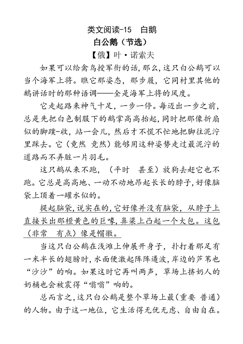 当前位置: 首页小学资源小学四年级正文 四年级语文下册类文阅读-15白鹅_共5页 小学四年级 7 天前 0 0 5 以上为部分内容预览,如需源文档请登录您的会员账号进行下载! 声明:本站所有文章,如无特殊说明或标注,均为本站原创发布。任何个人或组织,在未征得本站同意时,禁止复制、盗用、采集、发布本站内容到任何网站、书籍等各类媒体平台。如若本站内容侵犯了原著者的合法权益,可联系我们进行处理。 尚学资源永久会员 打赏 收藏 海报 链接