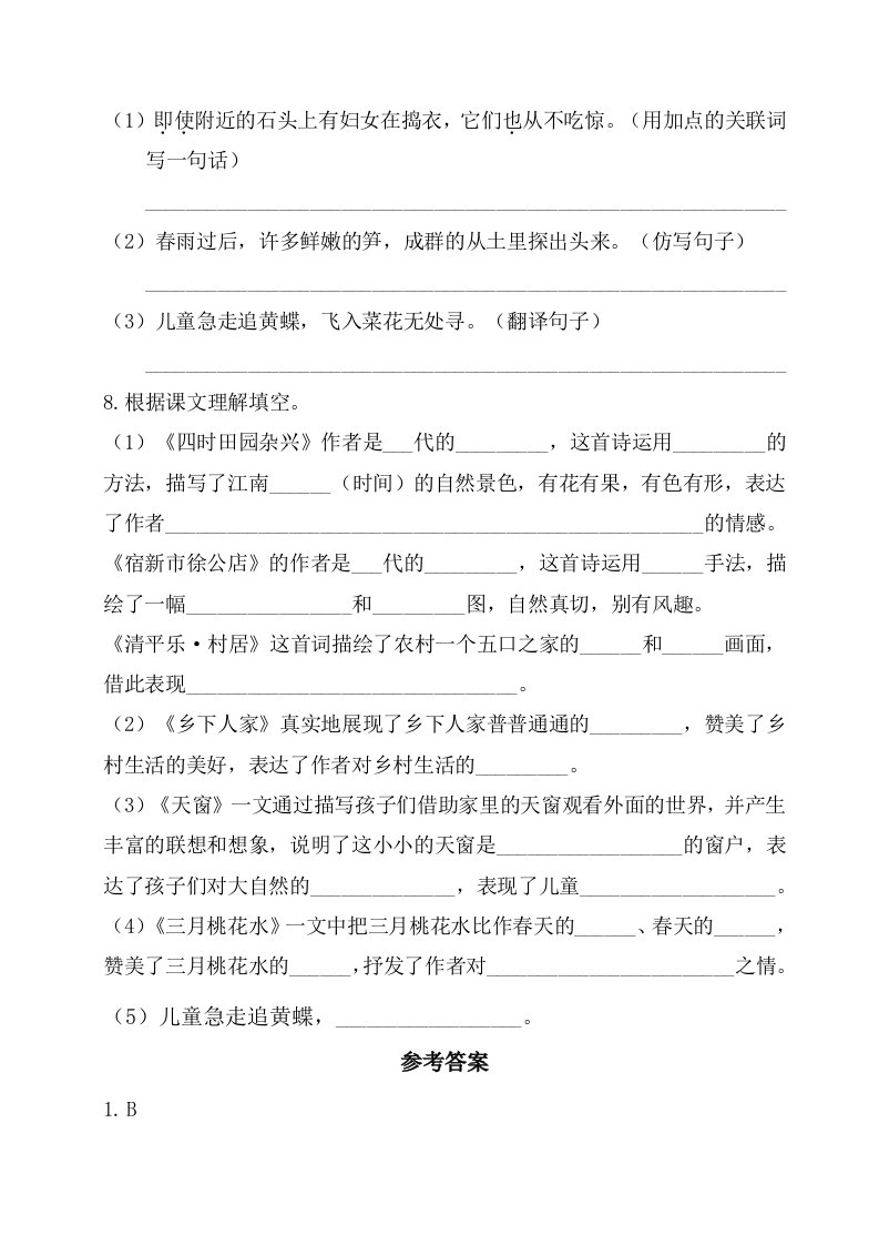 当前位置: 首页小学资源小学四年级正文 四年级语文下册试卷-第一单元基础知识复习检测(附答案)人教部编版_共3页 小学四年级 7 天前 0 0 5 以上为部分内容预览,如需源文档请登录您的会员账号进行下载! 声明:本站所有文章,如无特殊说明或标注,均为本站原创发布。任何个人或组织,在未征得本站同意时,禁止复制、盗用、采集、发布本站内容到任何网站、书籍等各类媒体平台。如若本站内容侵犯了原著者的合法权益,可联系我们进行处理。 尚学资源永久会员 打赏 收藏 海报 链接