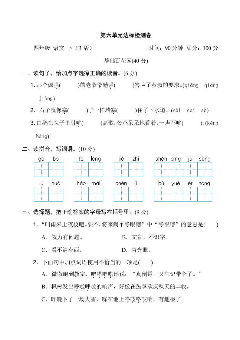 当前位置: 首页小学资源小学四年级正文 四年级语文下册第六单元达标检测卷_共9页 小学四年级 7 天前 0 0 5 以上为部分内容预览,如需源文档请登录您的会员账号进行下载! 声明:本站所有文章,如无特殊说明或标注,均为本站原创发布。任何个人或组织,在未征得本站同意时,禁止复制、盗用、采集、发布本站内容到任何网站、书籍等各类媒体平台。如若本站内容侵犯了原著者的合法权益,可联系我们进行处理。 尚学资源永久会员 打赏 收藏 海报 链接