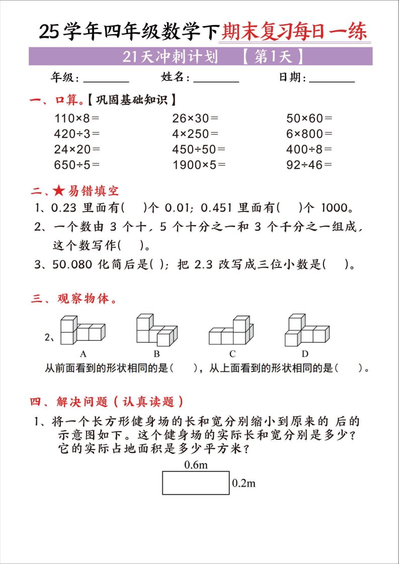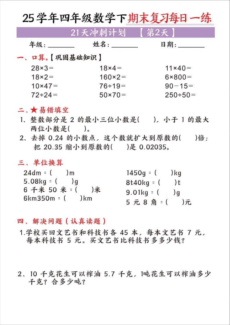 当前位置: 首页小学资源小学四年级正文 25四下数学期末复习每日一练21天冲刺计划21页_共21页 小学四年级 1 周前 0 0 15 以上为部分内容预览,如需源文档请登录您的会员账号进行下载! 声明:本站所有文章,如无特殊说明或标注,均为本站原创发布。任何个人或组织,在未征得本站同意时,禁止复制、盗用、采集、发布本站内容到任何网站、书籍等各类媒体平台。如若本站内容侵犯了原著者的合法权益,可联系我们进行处理。 尚学资源永久会员 打赏 收藏 海报 链接