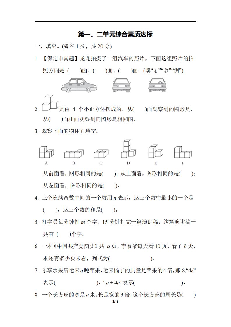 当前位置: 首页小学资源小学四年级正文 四下数学【冀教】【单元综合素质达标测试卷+期中末】(4)_共69页 小学四年级 7 天前 0 0 15 以上为部分内容预览,如需源文档请登录您的会员账号进行下载! 声明:本站所有文章,如无特殊说明或标注,均为本站原创发布。任何个人或组织,在未征得本站同意时,禁止复制、盗用、采集、发布本站内容到任何网站、书籍等各类媒体平台。如若本站内容侵犯了原著者的合法权益,可联系我们进行处理。 尚学资源永久会员 打赏 收藏 海报 链接