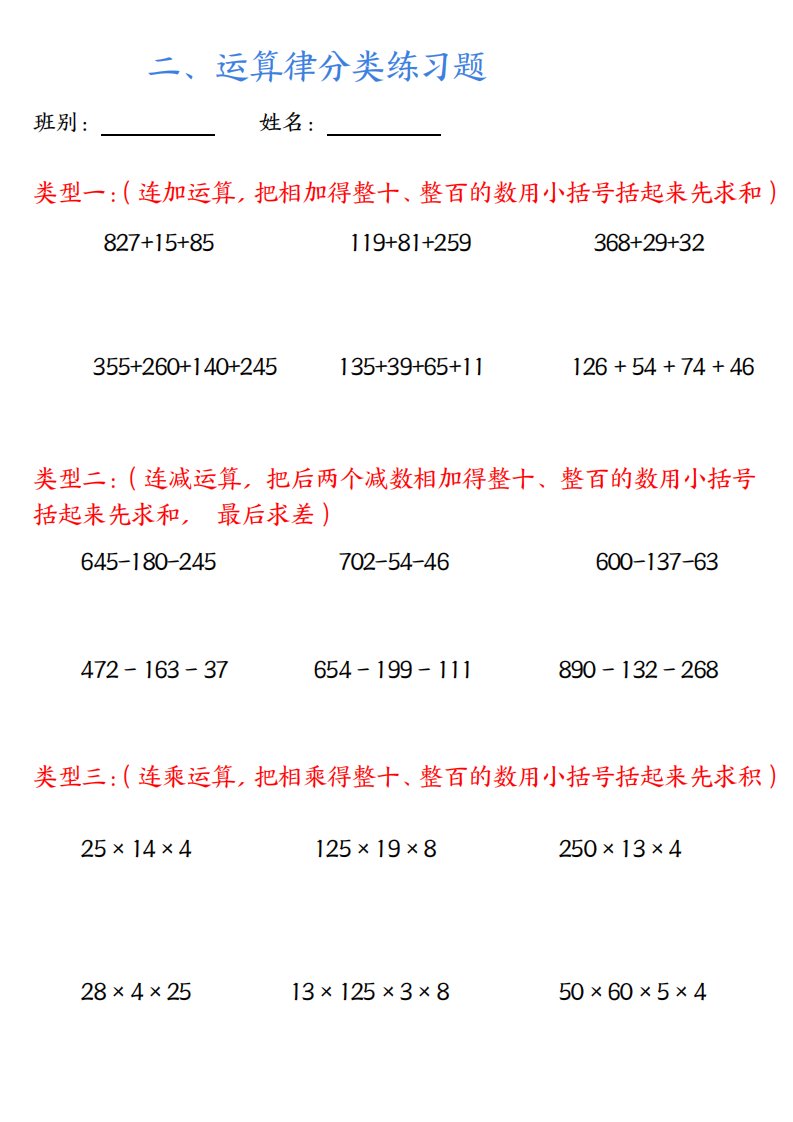 当前位置: 首页小学资源小学四年级正文 四年级下数学运算律分类练习题附答案(4)_共9页 小学四年级 6 天前 0 0 5 以上为部分内容预览,如需源文档请登录您的会员账号进行下载! 声明:本站所有文章,如无特殊说明或标注,均为本站原创发布。任何个人或组织,在未征得本站同意时,禁止复制、盗用、采集、发布本站内容到任何网站、书籍等各类媒体平台。如若本站内容侵犯了原著者的合法权益,可联系我们进行处理。 尚学资源永久会员 打赏 收藏 海报 链接