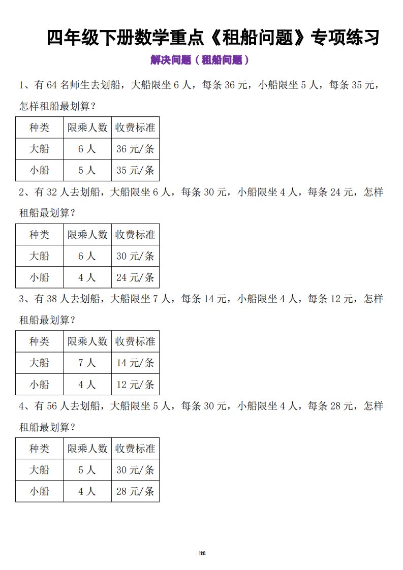 当前位置: 首页小学资源小学四年级正文 四年级下数学租船问题_共3页 小学四年级 1 周前 0 0 5 以上为部分内容预览,如需源文档请登录您的会员账号进行下载! 声明:本站所有文章,如无特殊说明或标注,均为本站原创发布。任何个人或组织,在未征得本站同意时,禁止复制、盗用、采集、发布本站内容到任何网站、书籍等各类媒体平台。如若本站内容侵犯了原著者的合法权益,可联系我们进行处理。 尚学资源永久会员 打赏 收藏 海报 链接