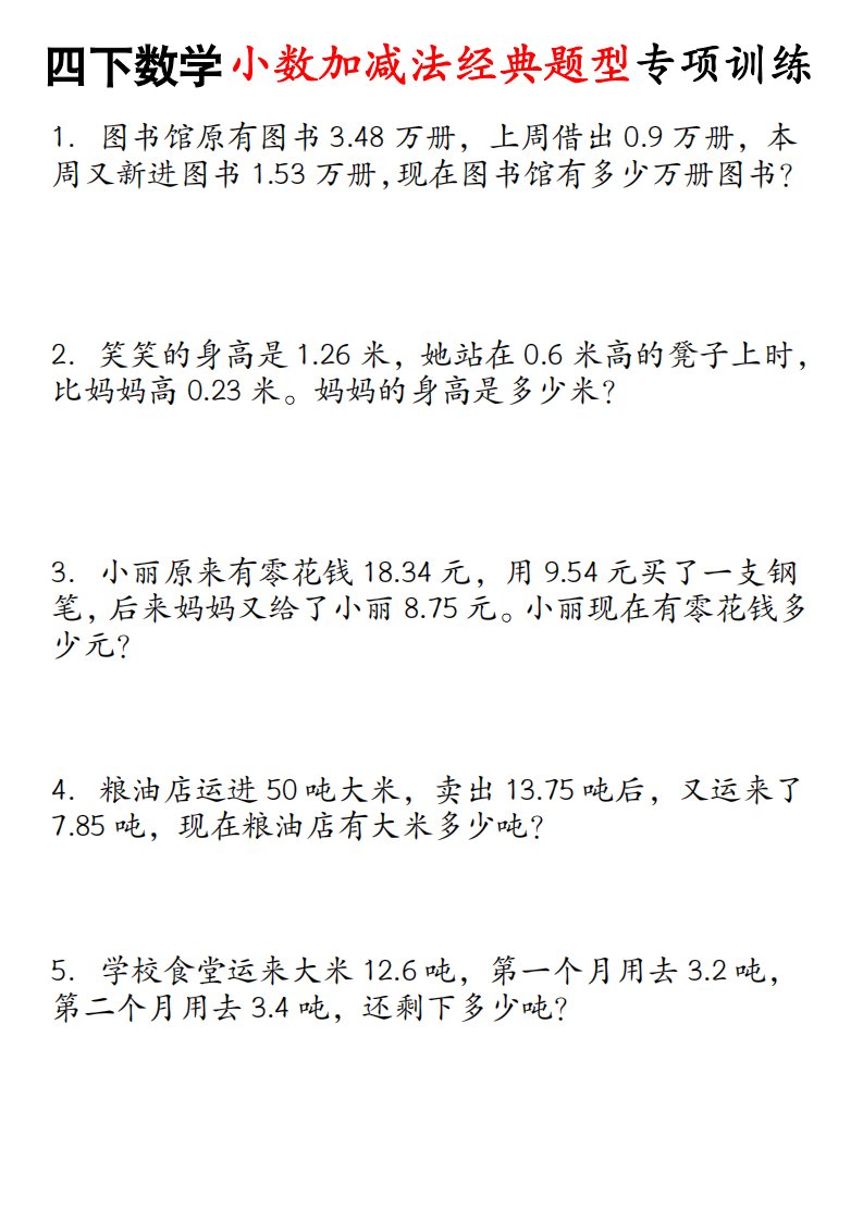 当前位置: 首页小学资源小学四年级正文 四下数学小数加减法经典题型专项_共13页 小学四年级 7 天前 0 0 10 以上为部分内容预览,如需源文档请登录您的会员账号进行下载! 声明:本站所有文章,如无特殊说明或标注,均为本站原创发布。任何个人或组织,在未征得本站同意时,禁止复制、盗用、采集、发布本站内容到任何网站、书籍等各类媒体平台。如若本站内容侵犯了原著者的合法权益,可联系我们进行处理。 尚学资源永久会员 打赏 收藏 海报 链接