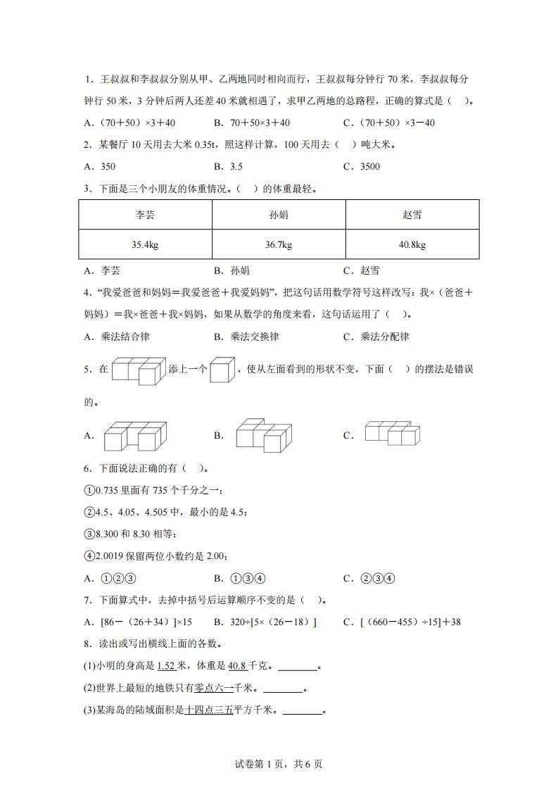 当前位置: 首页小学资源小学四年级正文 2024-2025学年人教版数学四年级下册期中模拟卷(二)_共21页 小学四年级 7 天前 0 0 15 以上为部分内容预览,如需源文档请登录您的会员账号进行下载! 声明:本站所有文章,如无特殊说明或标注,均为本站原创发布。任何个人或组织,在未征得本站同意时,禁止复制、盗用、采集、发布本站内容到任何网站、书籍等各类媒体平台。如若本站内容侵犯了原著者的合法权益,可联系我们进行处理。 尚学资源永久会员 打赏 收藏 海报 链接