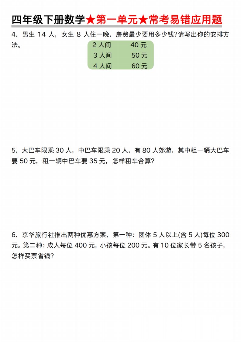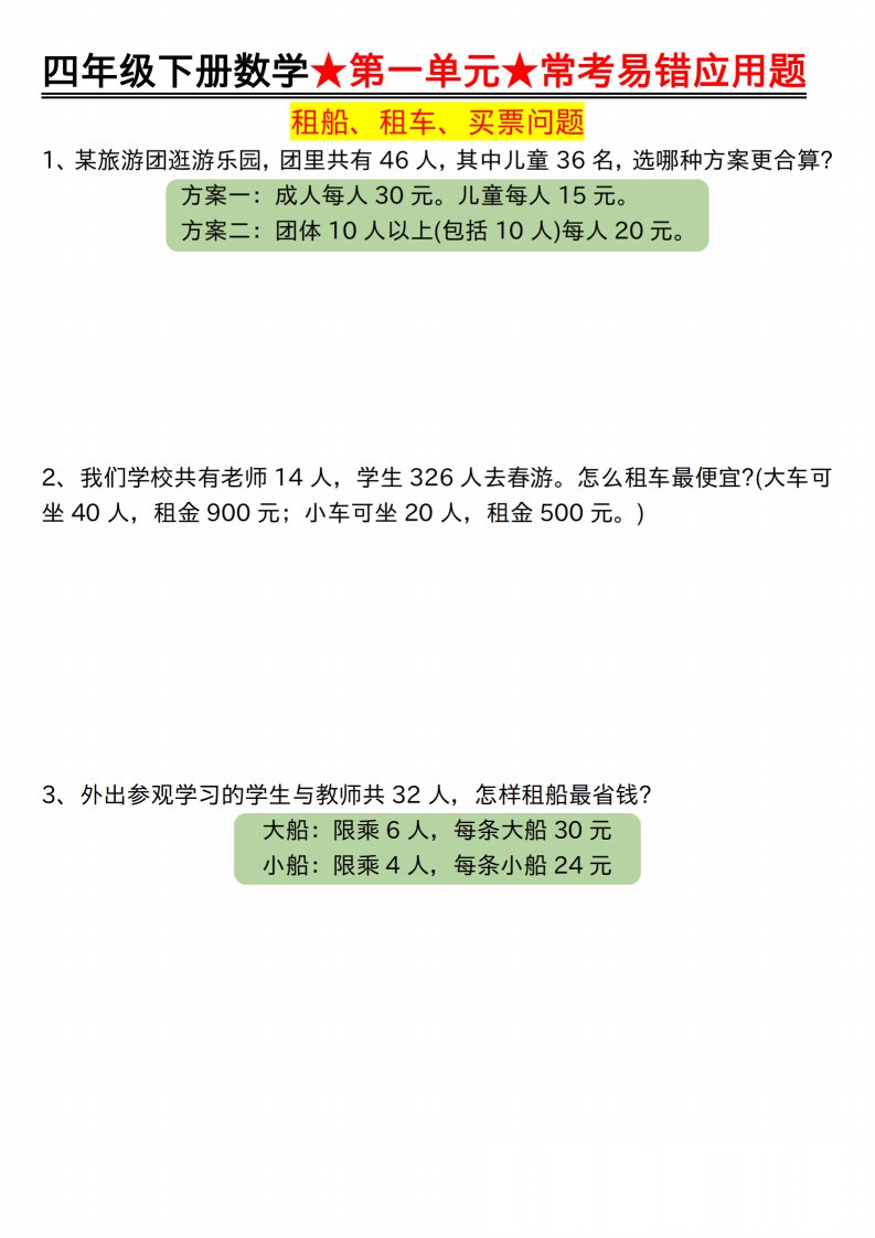 当前位置: 首页小学资源小学四年级正文 【应用题专项】四年级下册数学★第一单元★常考易错应用题空白_共7页 小学四年级 7 天前 0 0 5 以上为部分内容预览,如需源文档请登录您的会员账号进行下载! 声明:本站所有文章,如无特殊说明或标注,均为本站原创发布。任何个人或组织,在未征得本站同意时,禁止复制、盗用、采集、发布本站内容到任何网站、书籍等各类媒体平台。如若本站内容侵犯了原著者的合法权益,可联系我们进行处理。 尚学资源永久会员 打赏 收藏 海报 链接